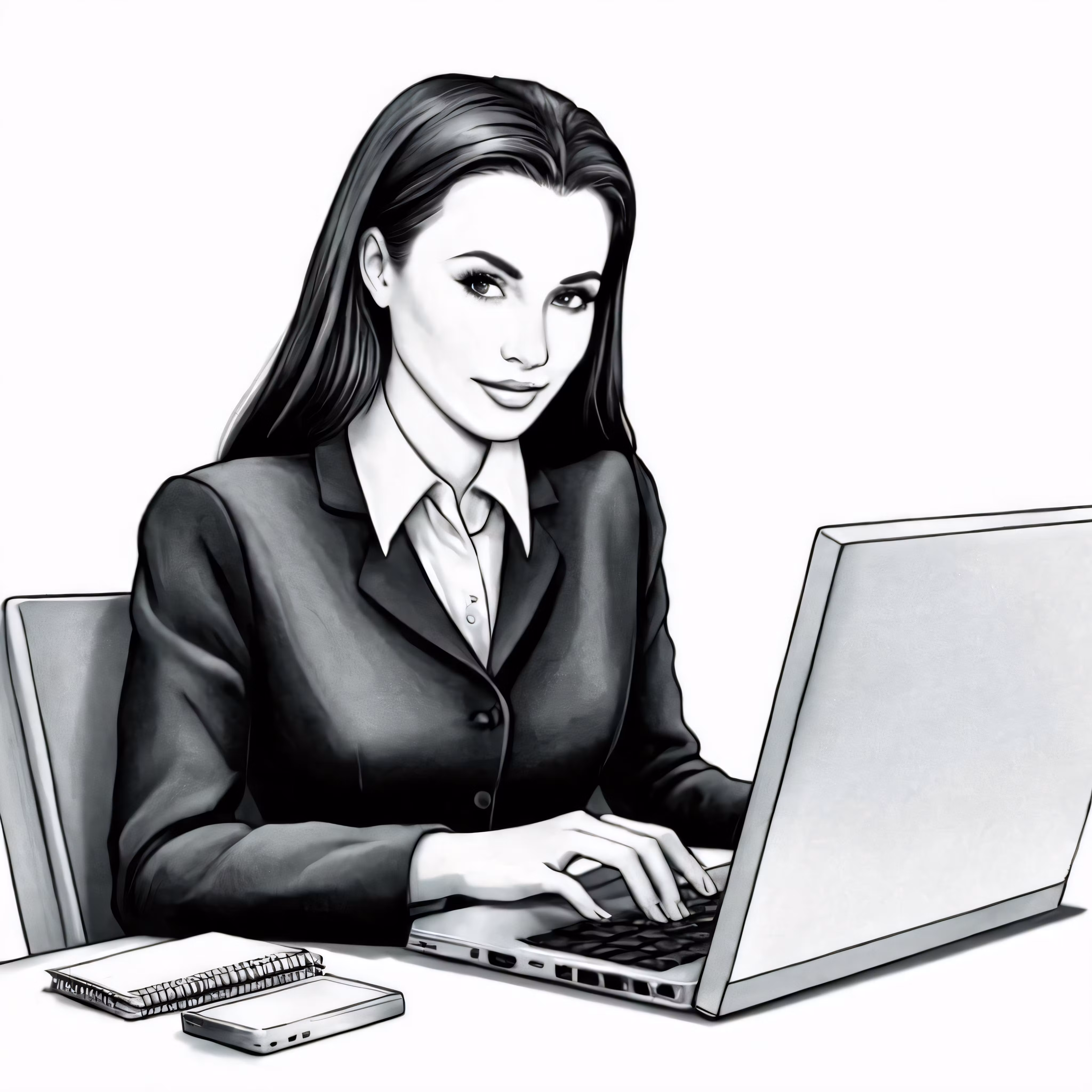 High resolution picture, free to use, a cartoon woman is on her laptop on the desk