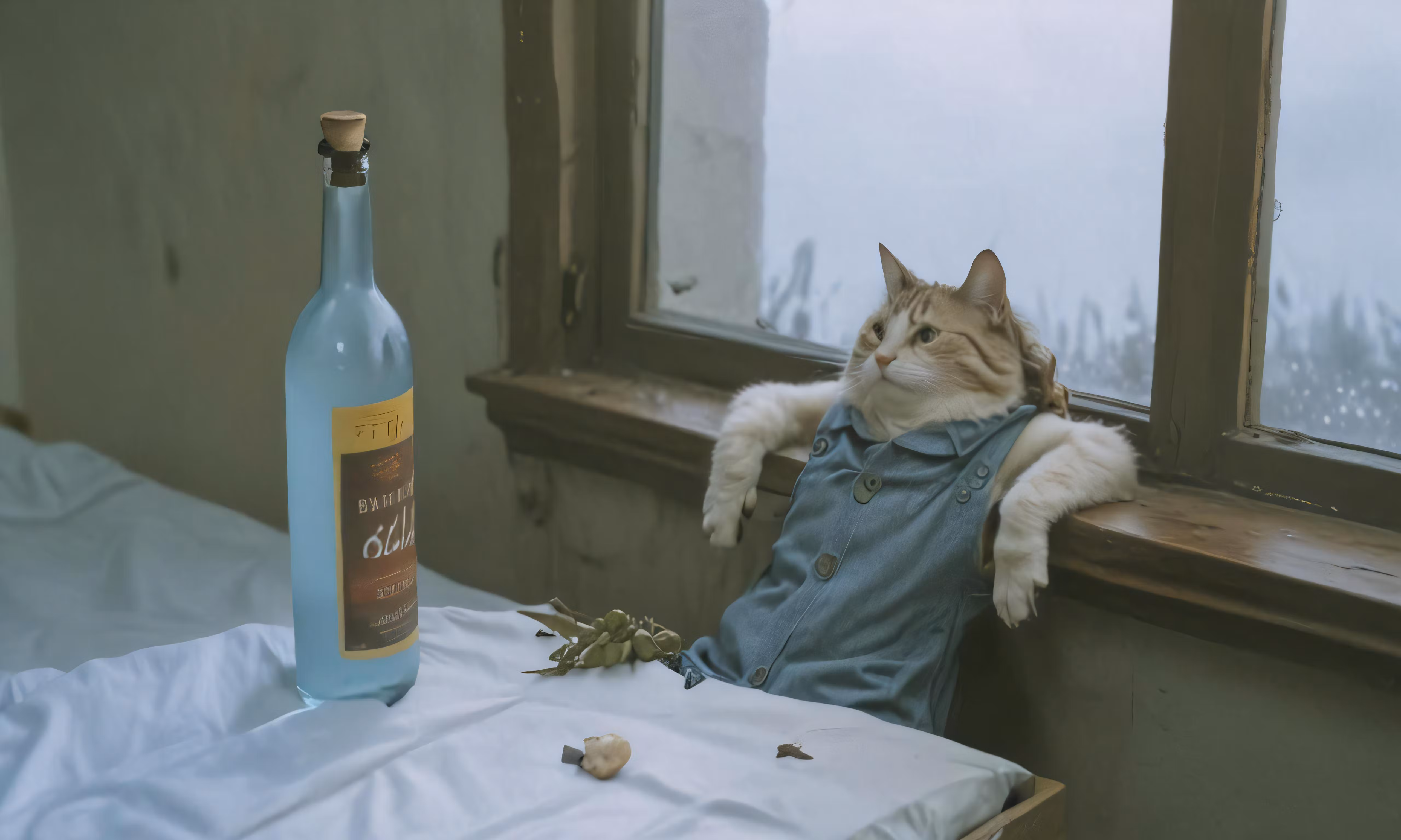 High resolution picture, free to use, a cat looks like he is wearing overalls and with his paw on the window ledge