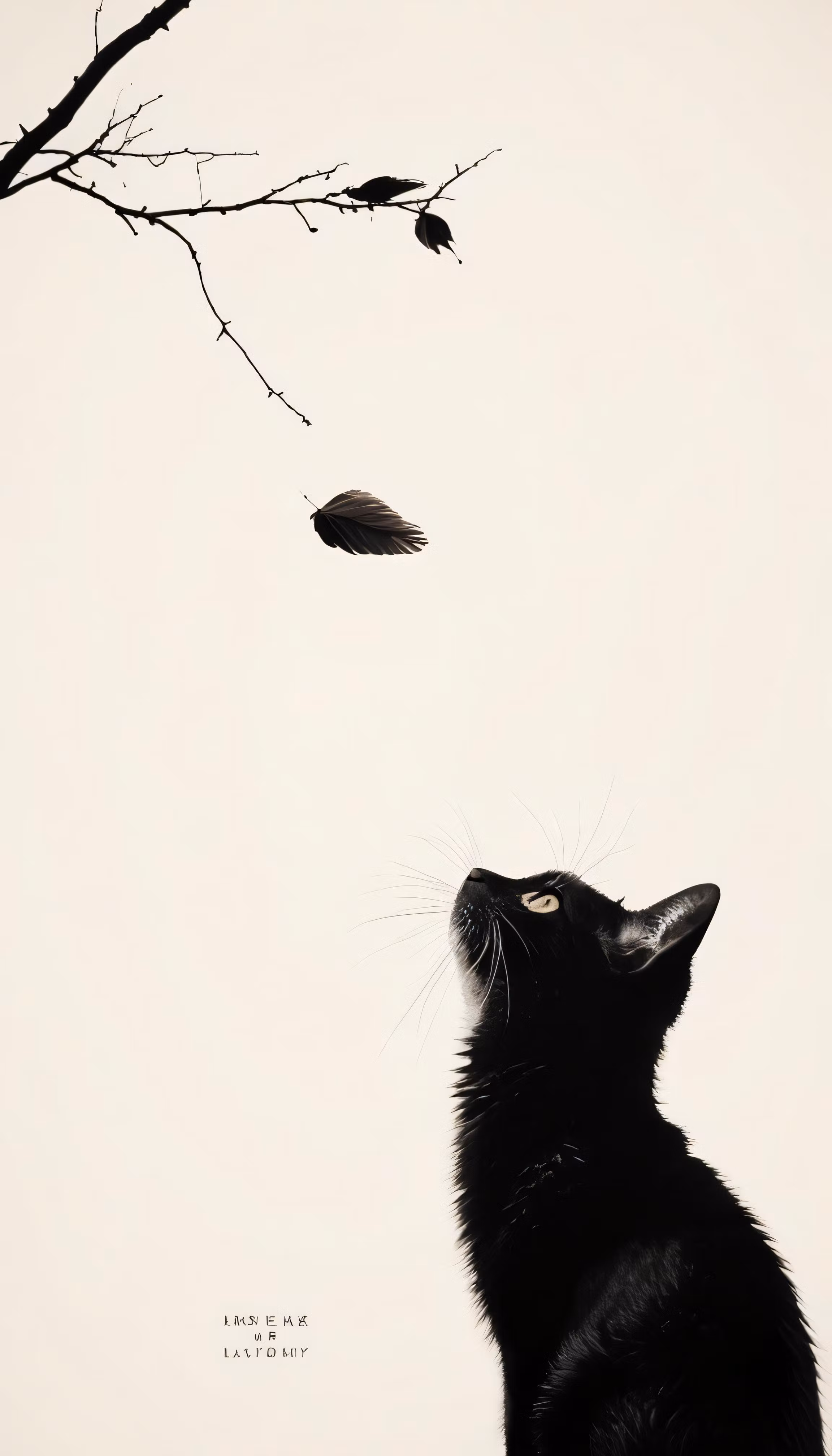 High resolution picture, free to use, a cat sits and looks up at a leafless branch