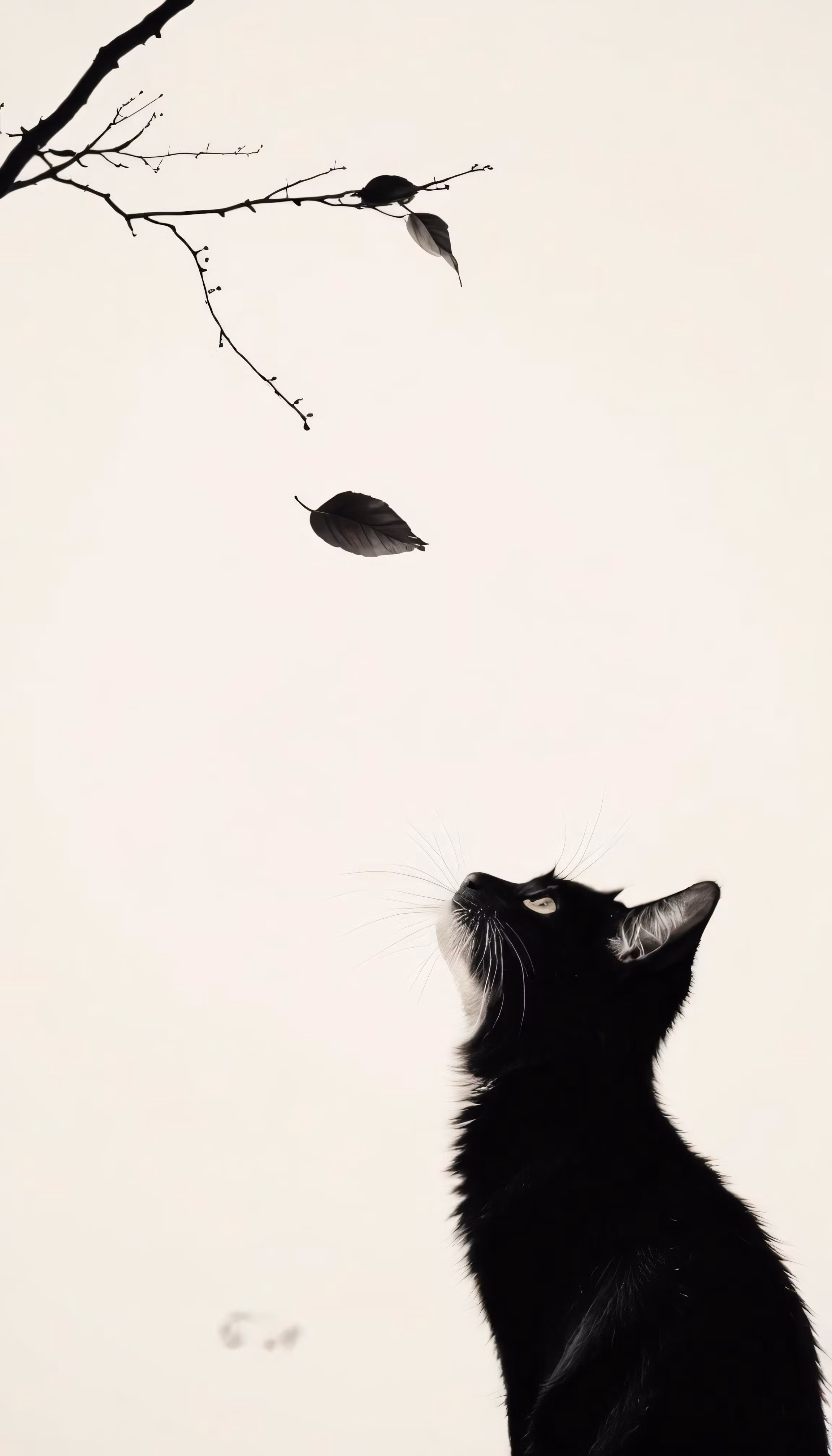High resolution picture, free to use, a cat sitting in the snow looking up at a tree branch