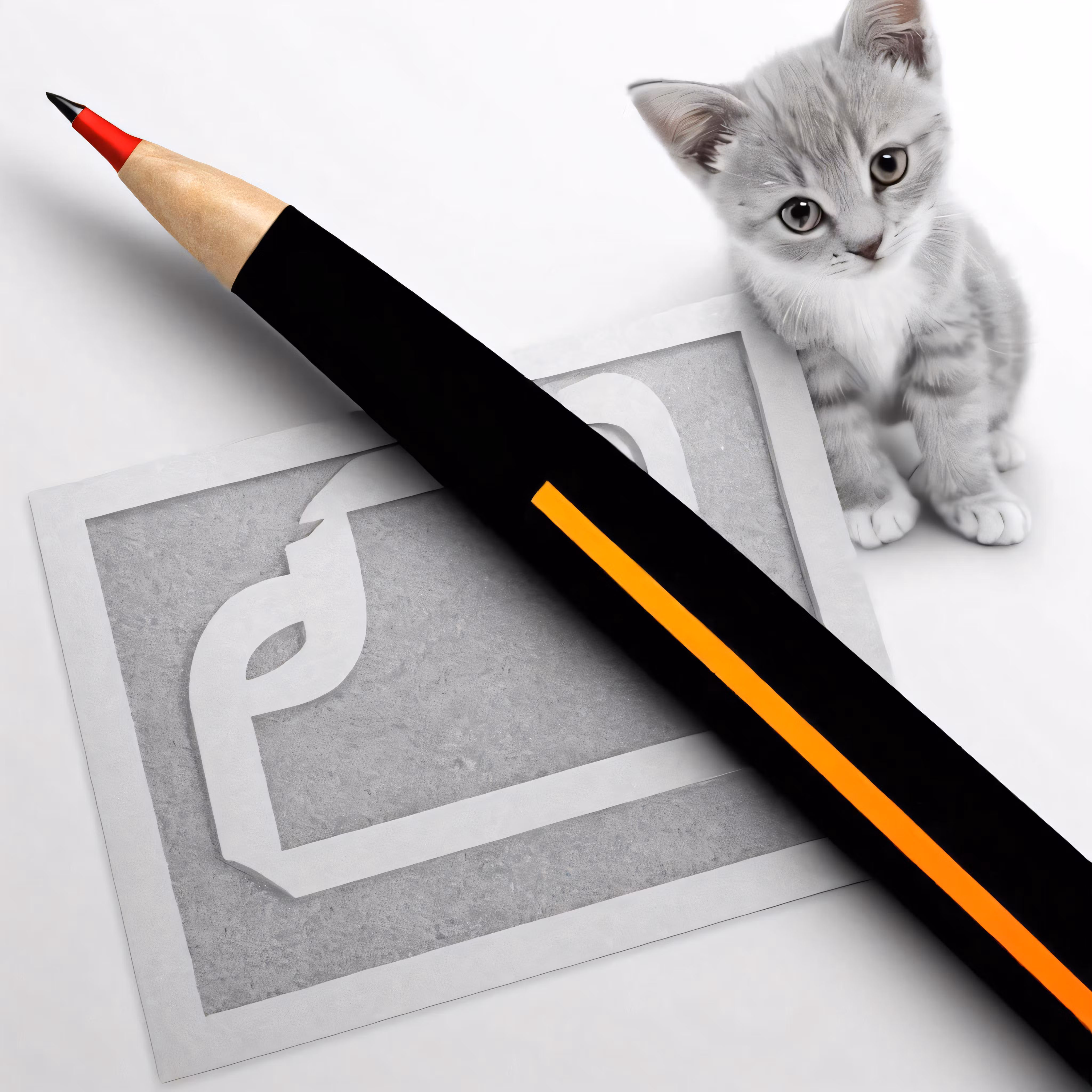 High resolution picture, free to use, a cat sitting on the floor next to a pencil