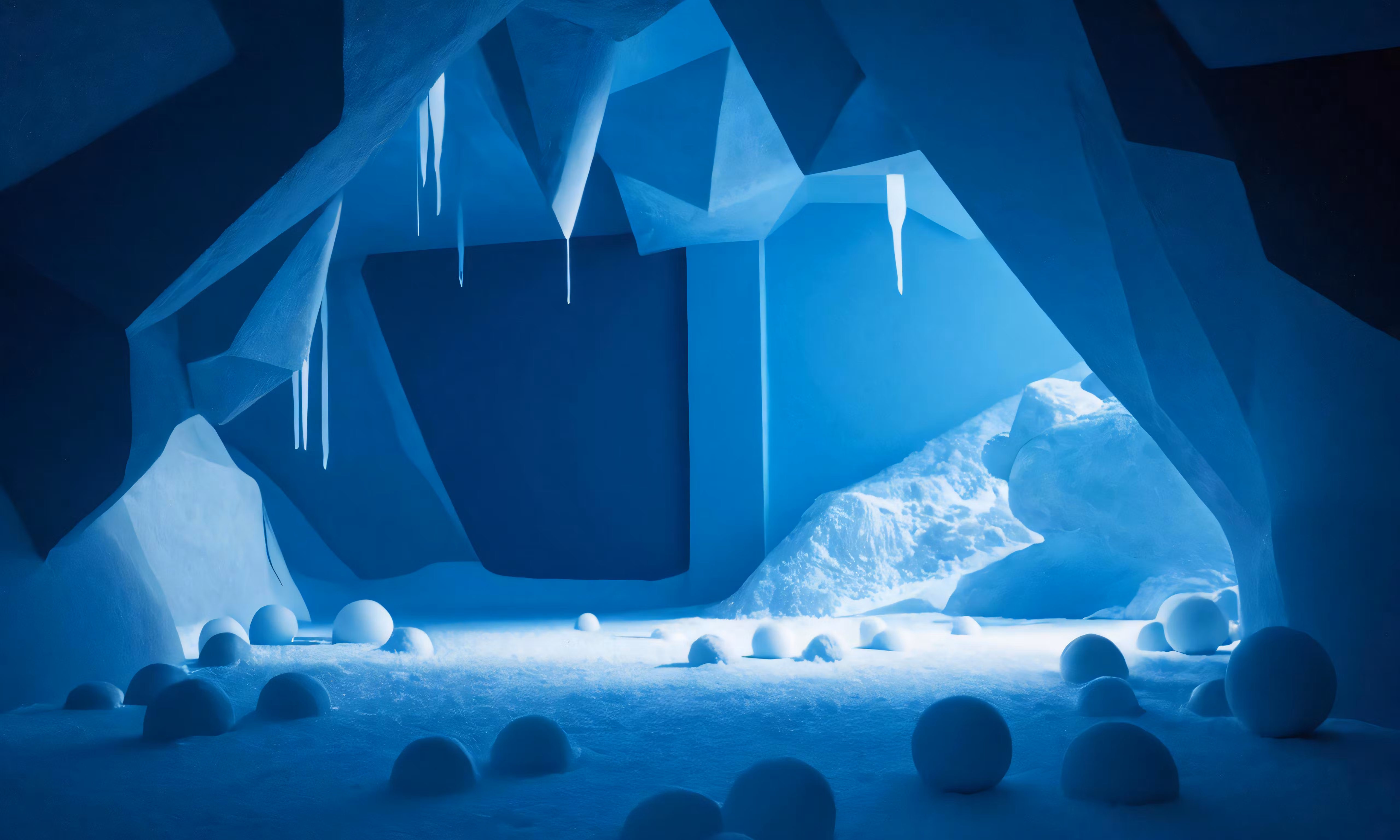 High resolution picture, free to use, a cave in the snow with ice formations
