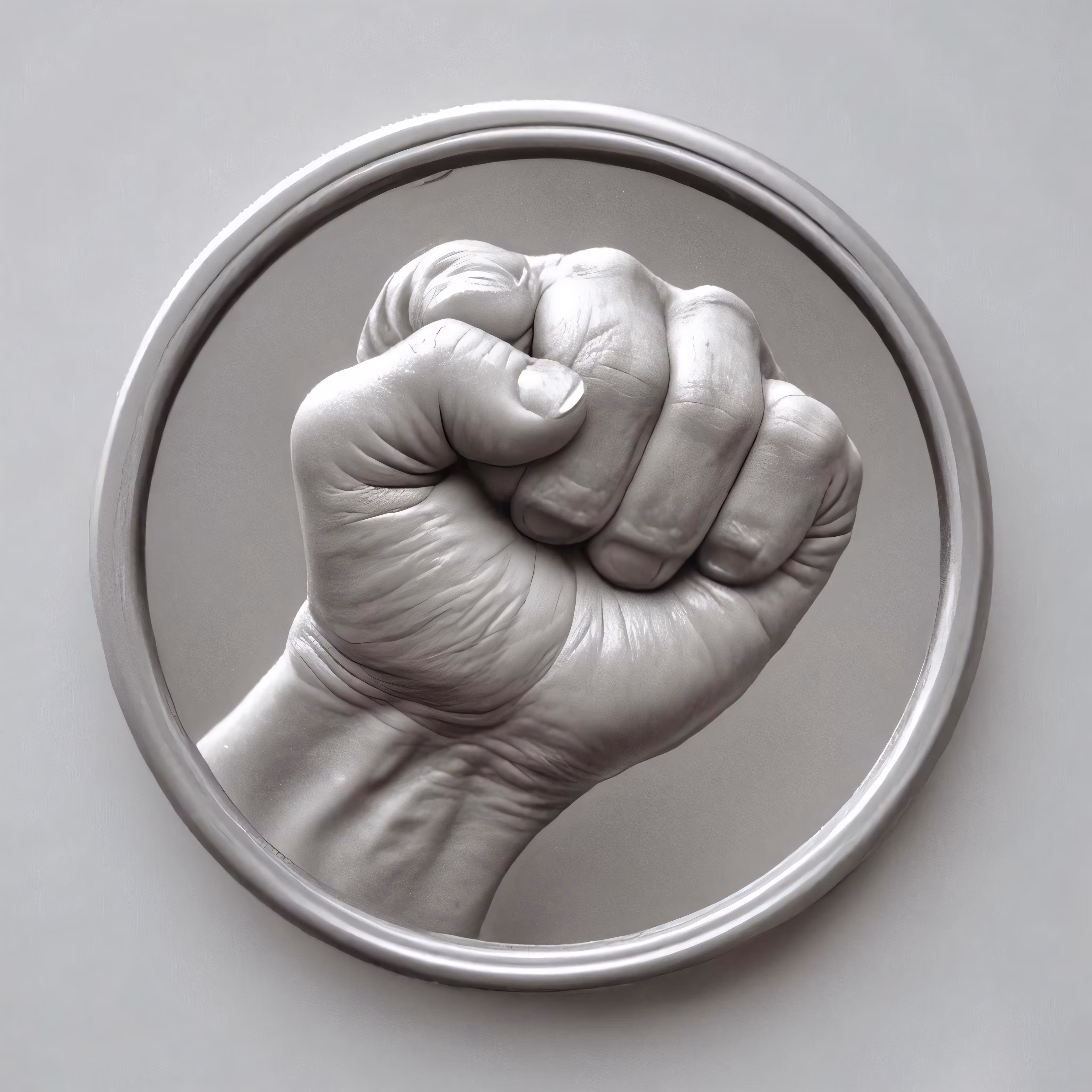 High resolution picture, free to use, a circular frame with an image of a clenched hand on it