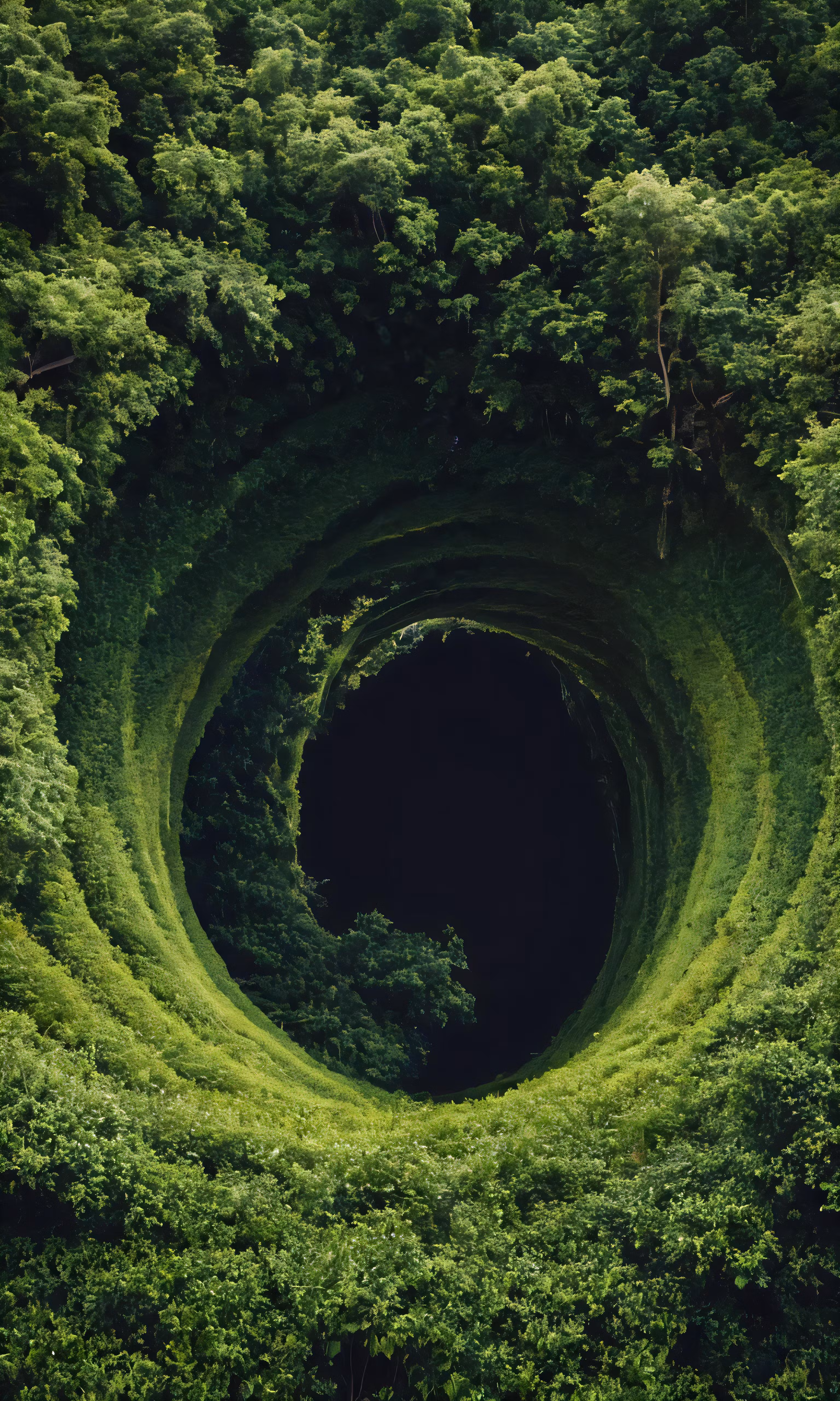 High resolution picture, free to use, a circular hole in the middle of a forest