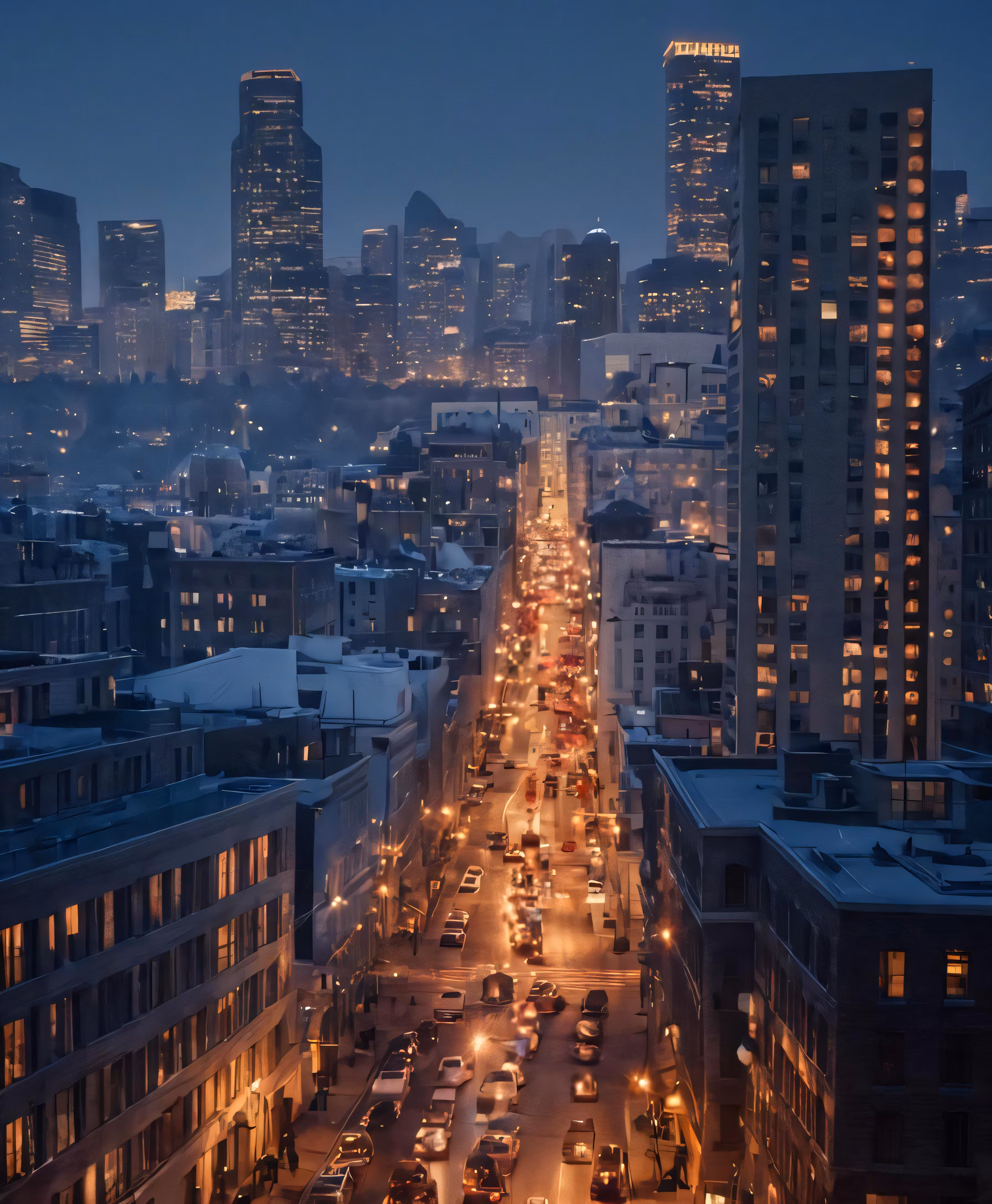 High resolution picture, free to use, a city is lit up with traffic as the sun rises