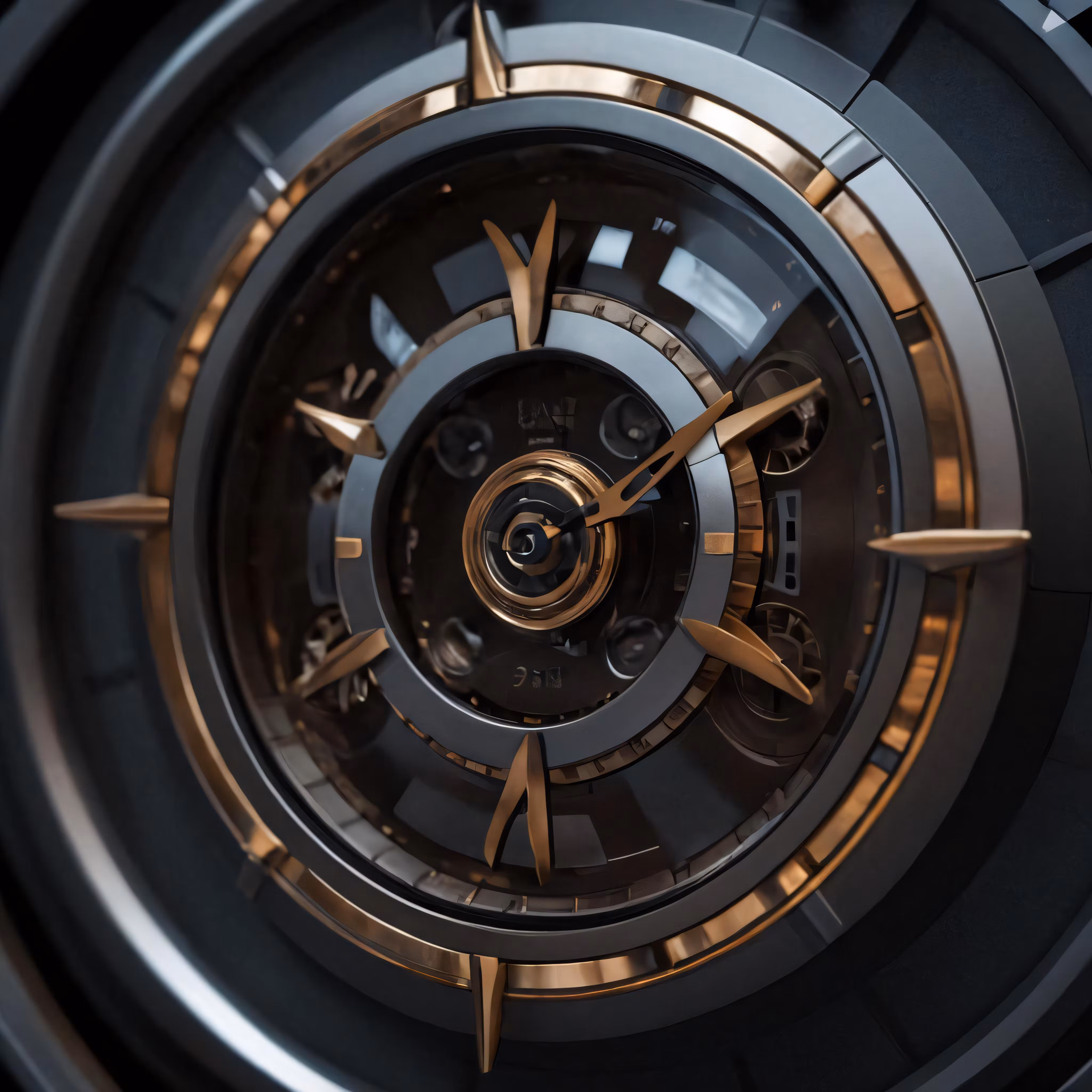 High resolution picture, free to use, a clock with gold accents on it sitting inside of a mechanical wheel