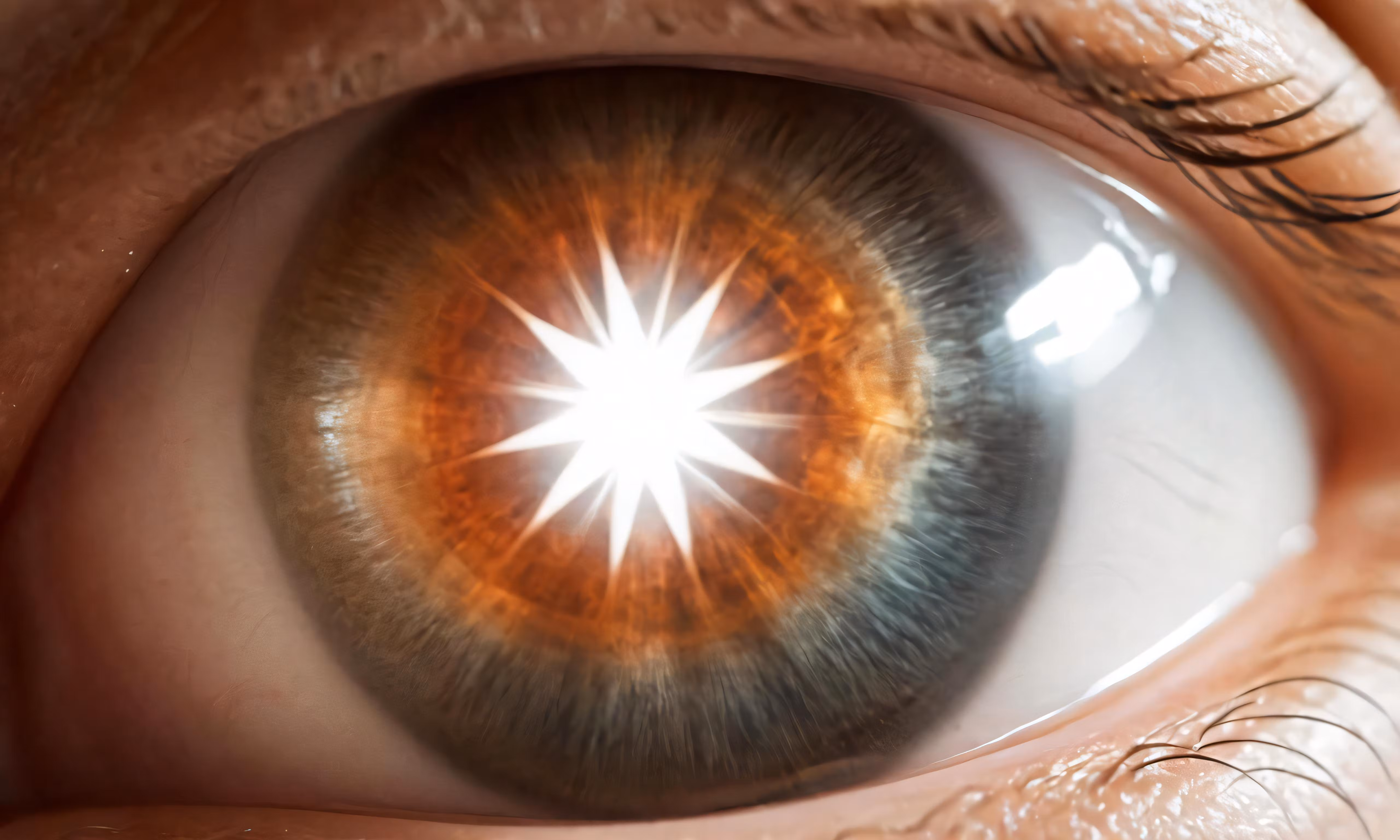 High resolution picture, free to use, a close   up image of an eye with a bright light shining through it