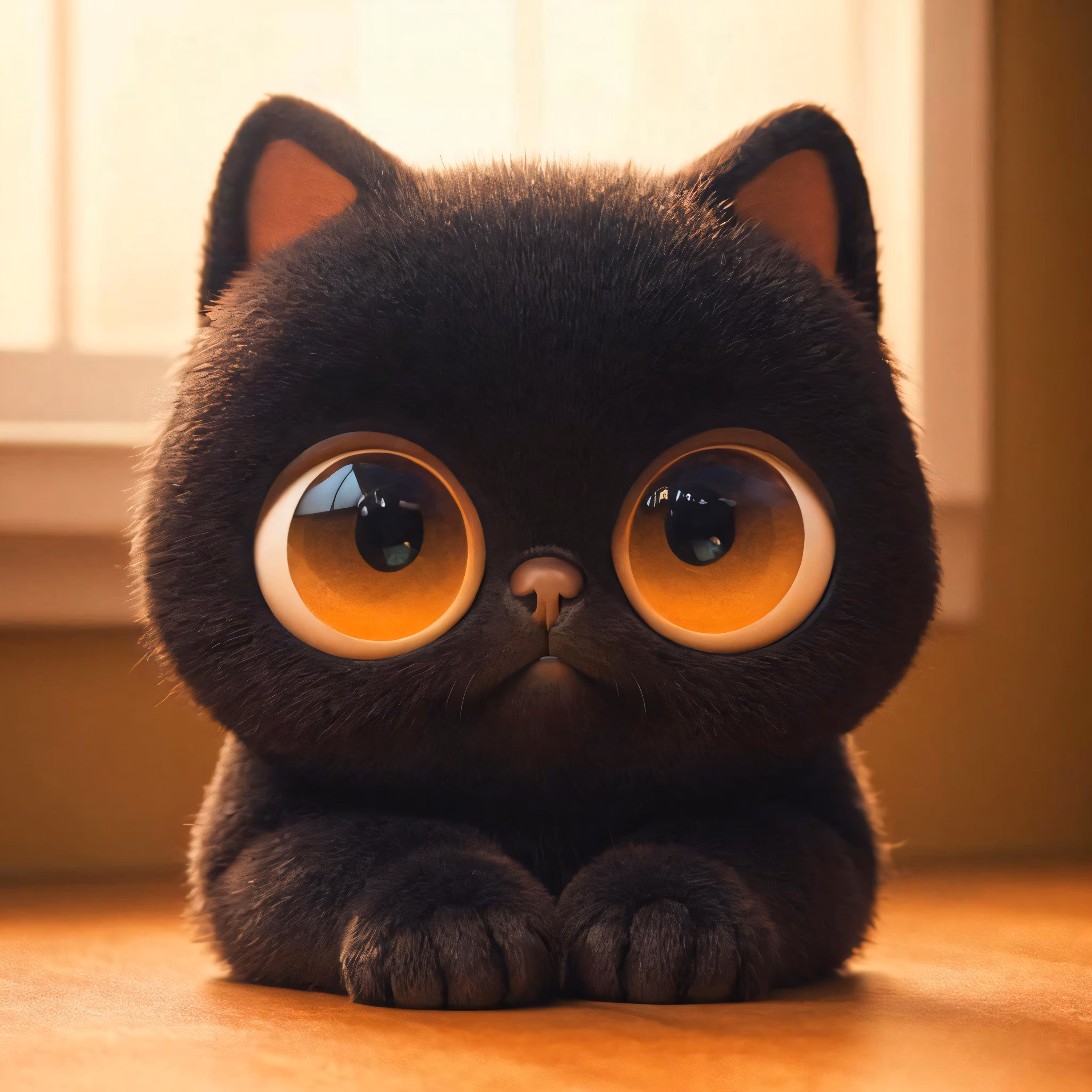 High resolution picture, free to use, a close up of a black cat with a big yellow eye
