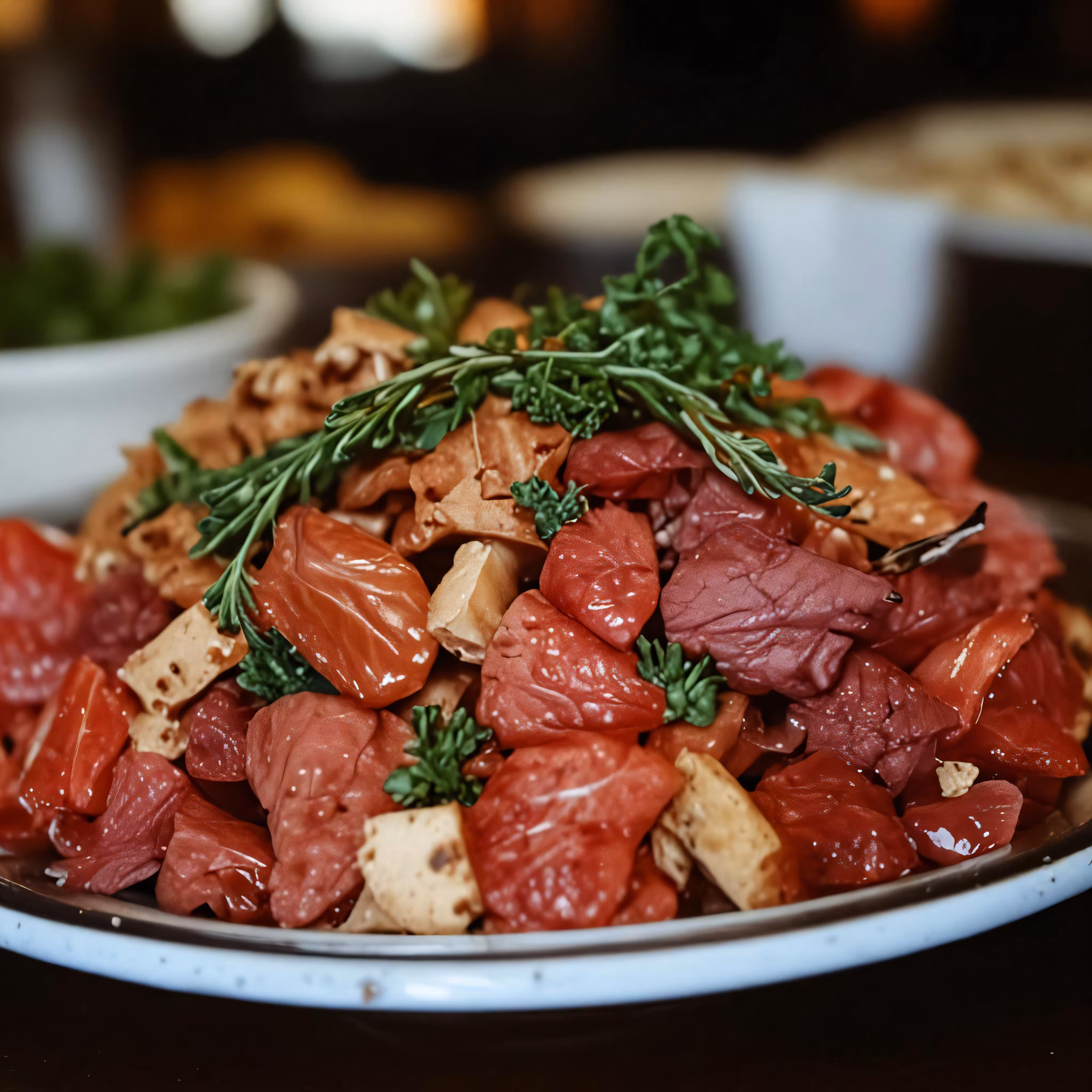 High resolution picture, free to use, a close up of a plate of food with meat and vegetables on it