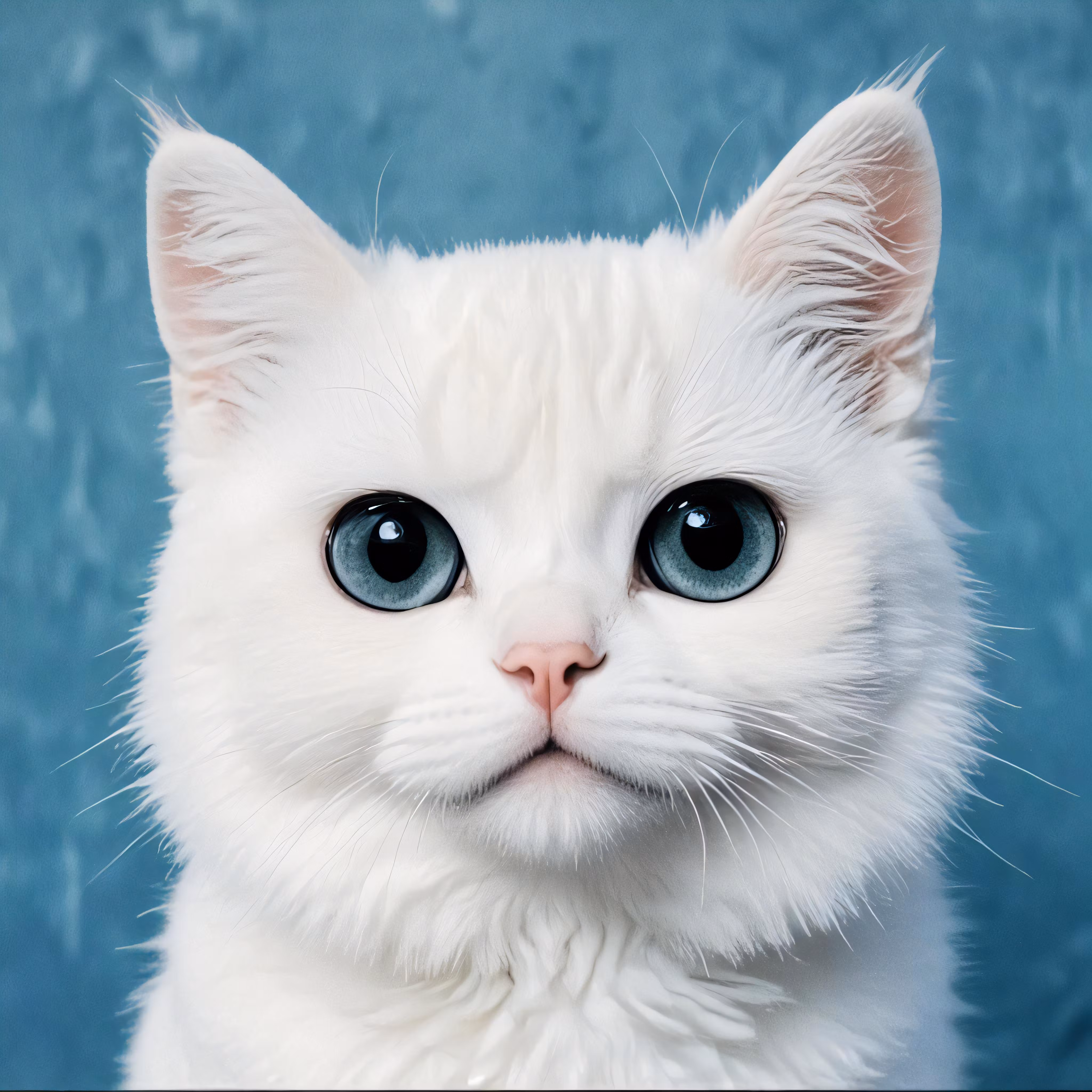 High resolution picture, free to use, a close up of a white cat with blue eyes
