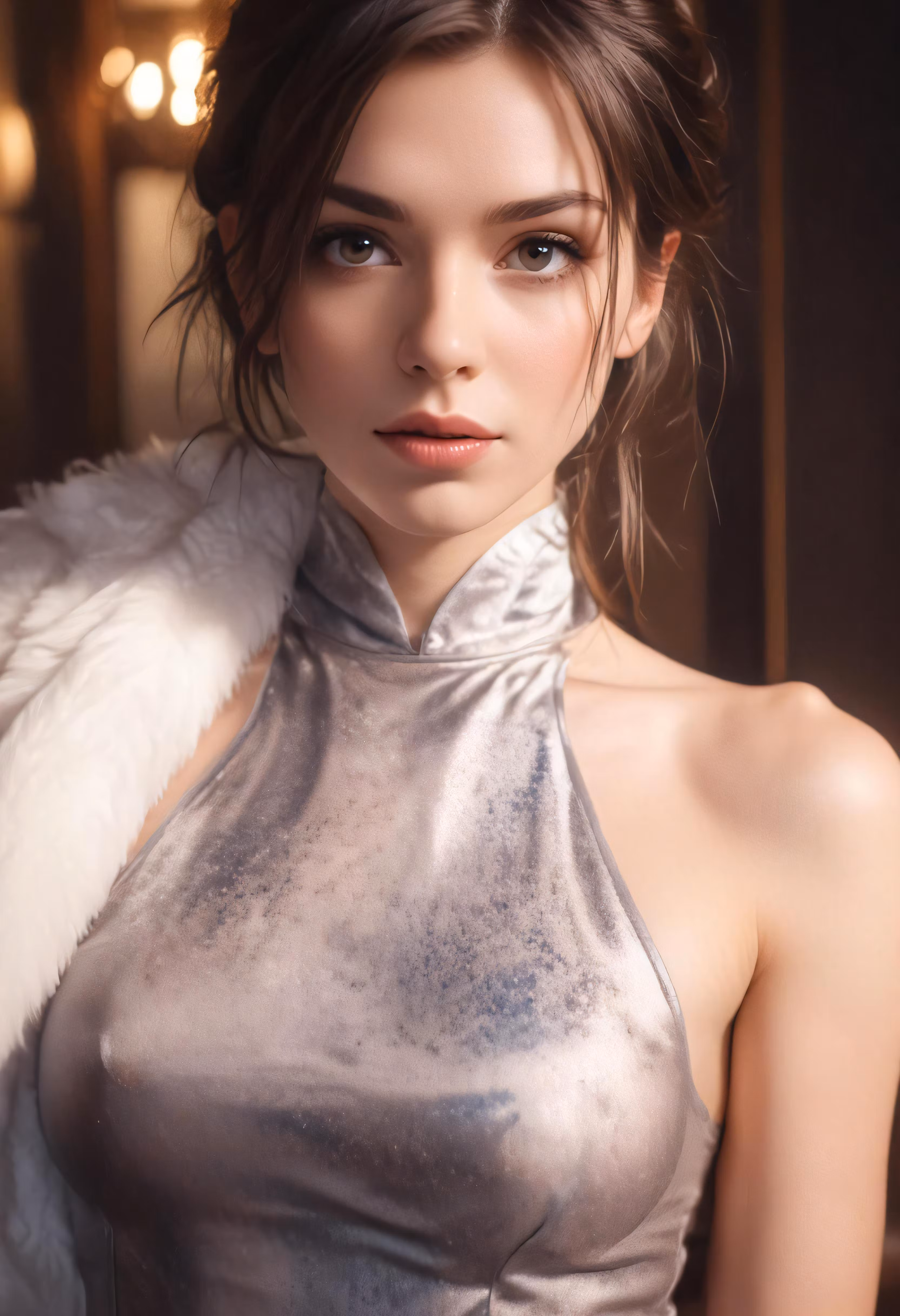 High resolution picture, free to use, a close up of a woman wearing a silver dress