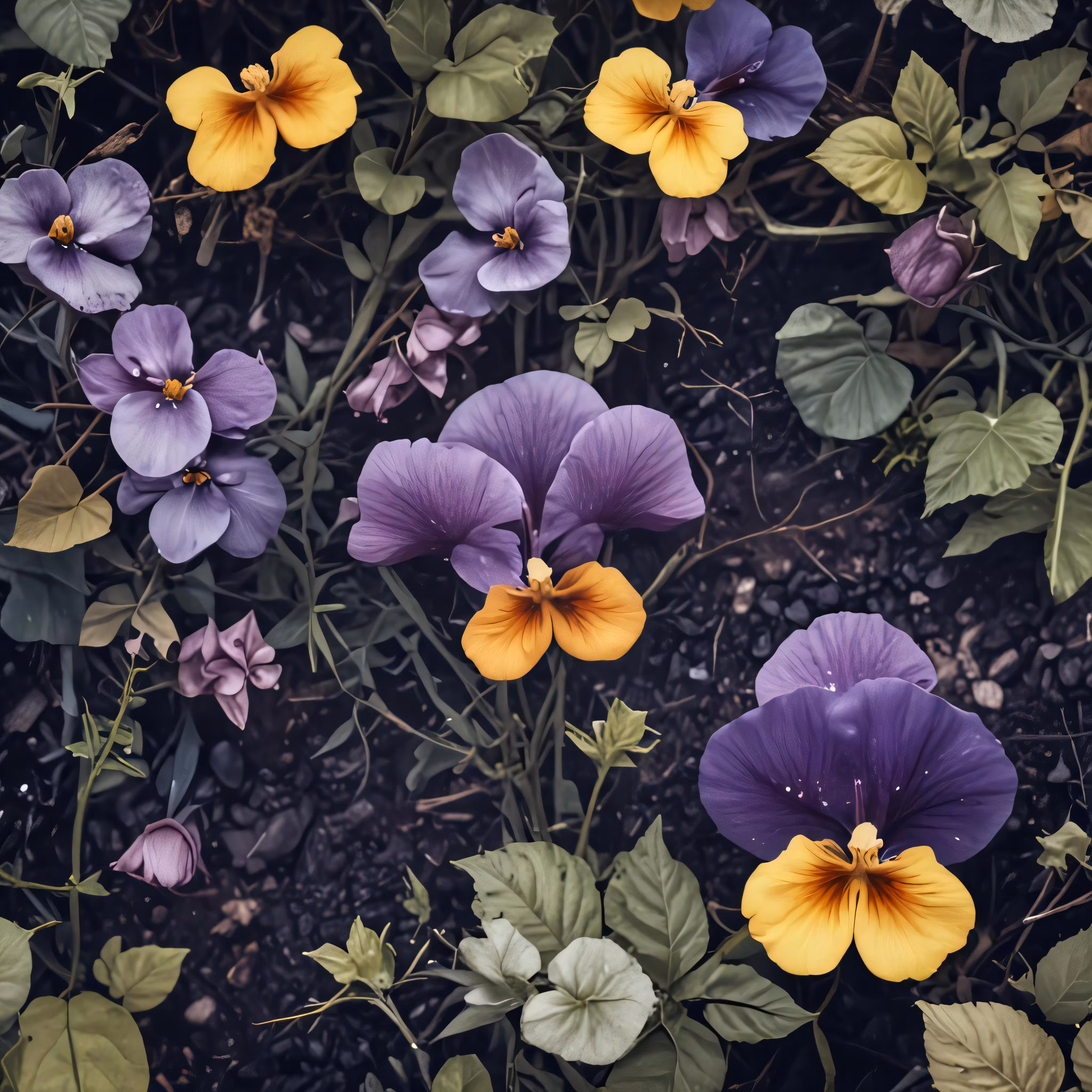 High resolution picture, free to use, a close up of purple and yellow flowers