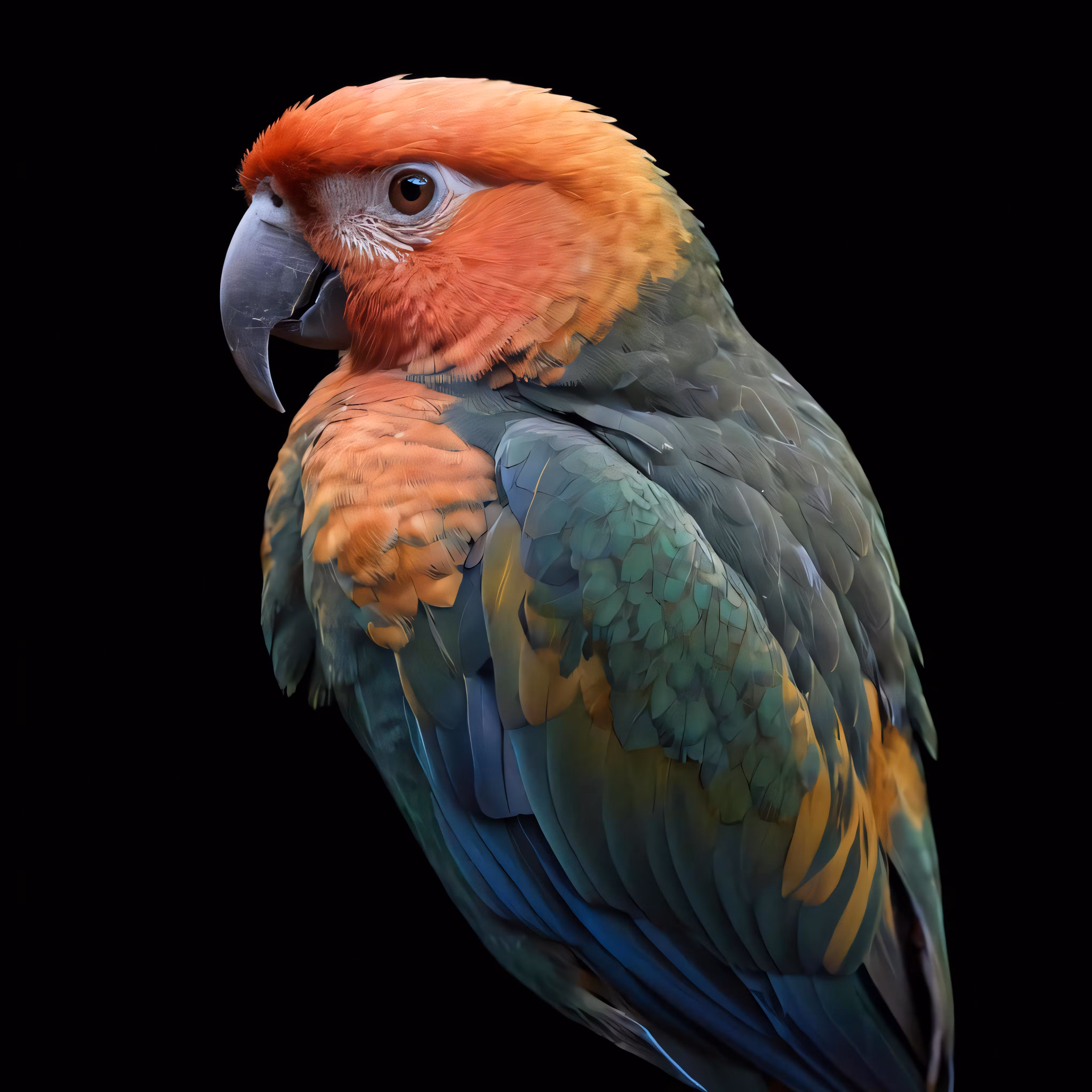High resolution picture, free to use, a colorful parrot is posed in front of a black background