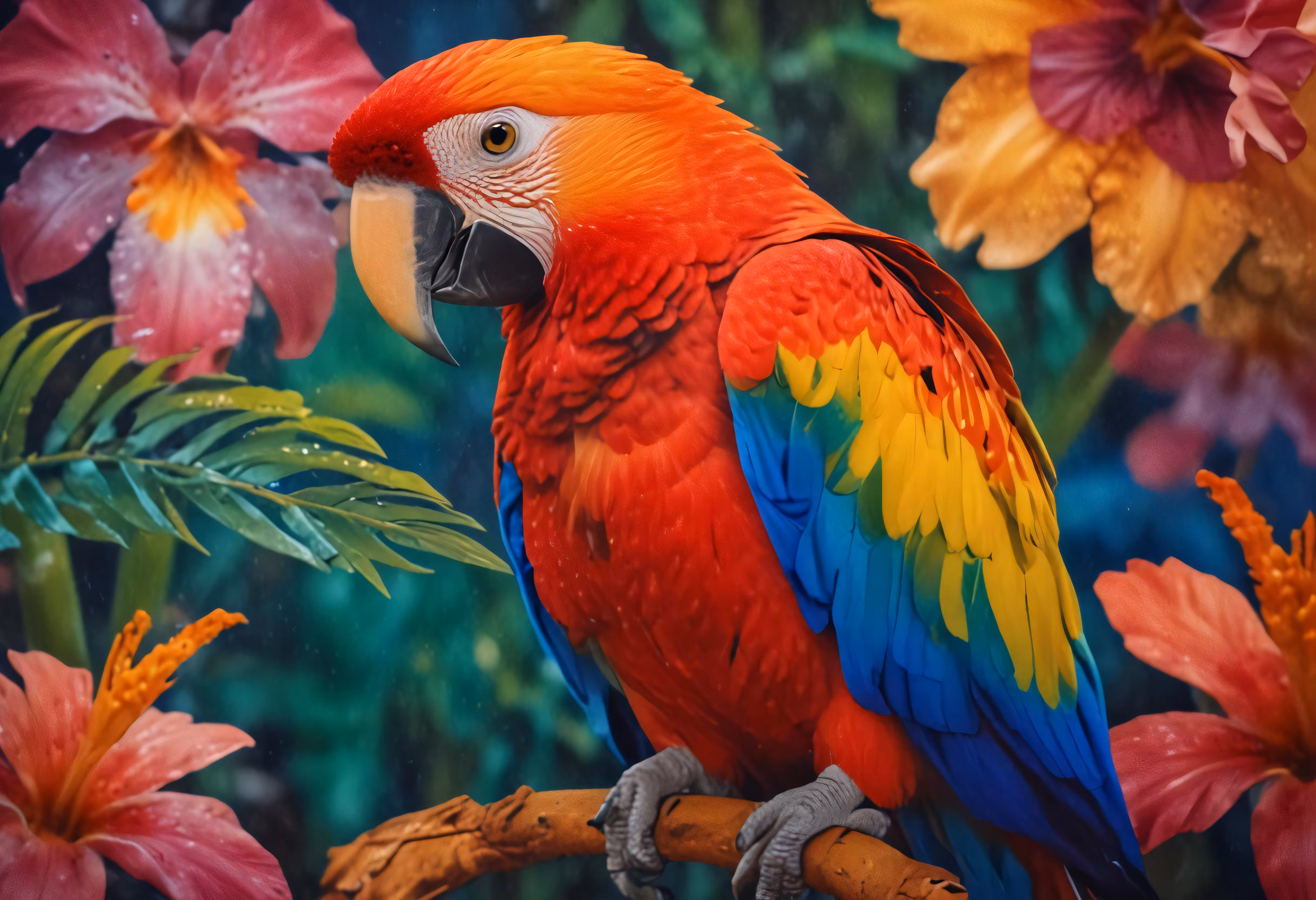 High resolution picture, free to use, a colorful parrot sitting on top of a tree branch
