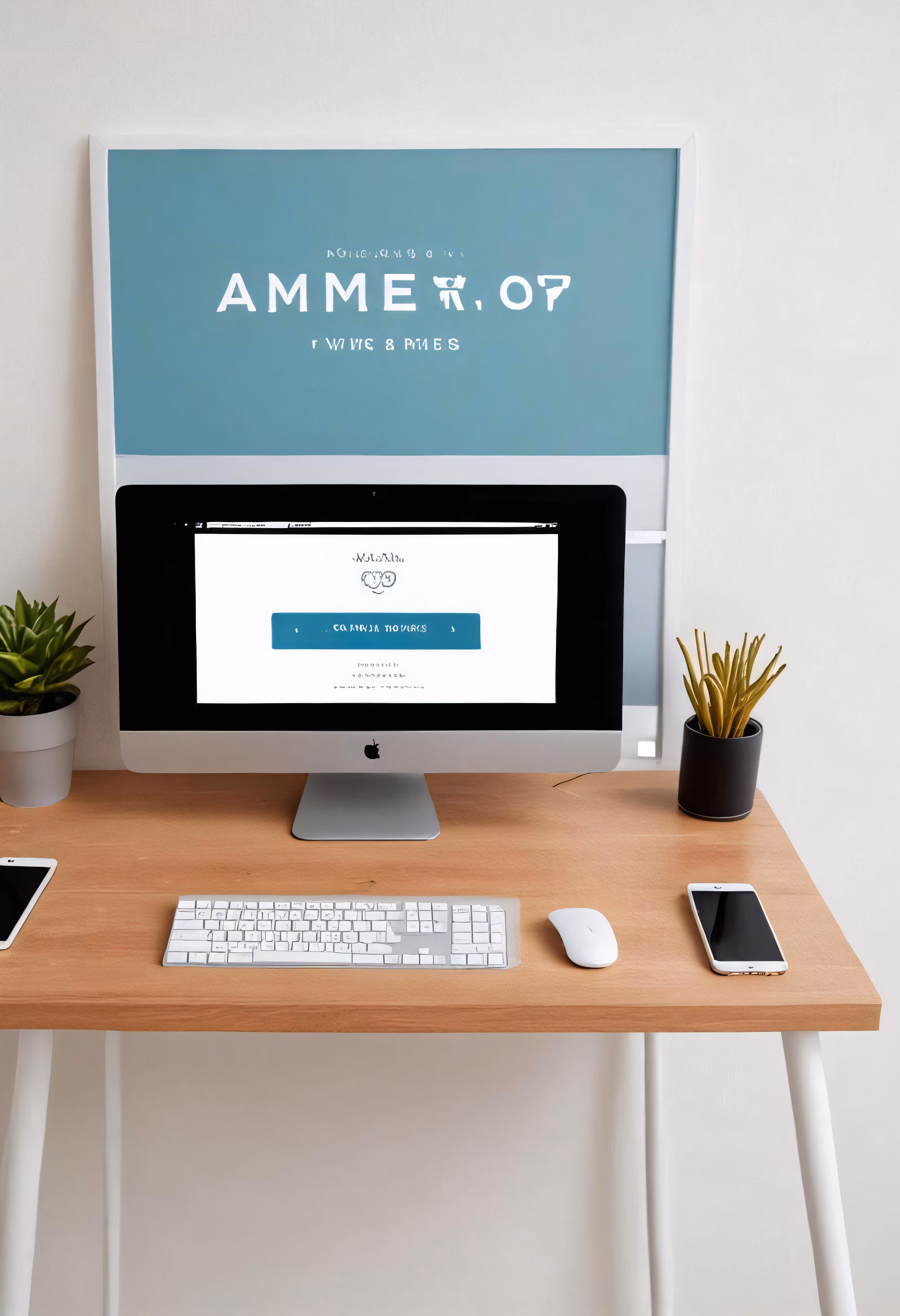 High resolution picture, free to use, a computer with an ad next to it on a desk
