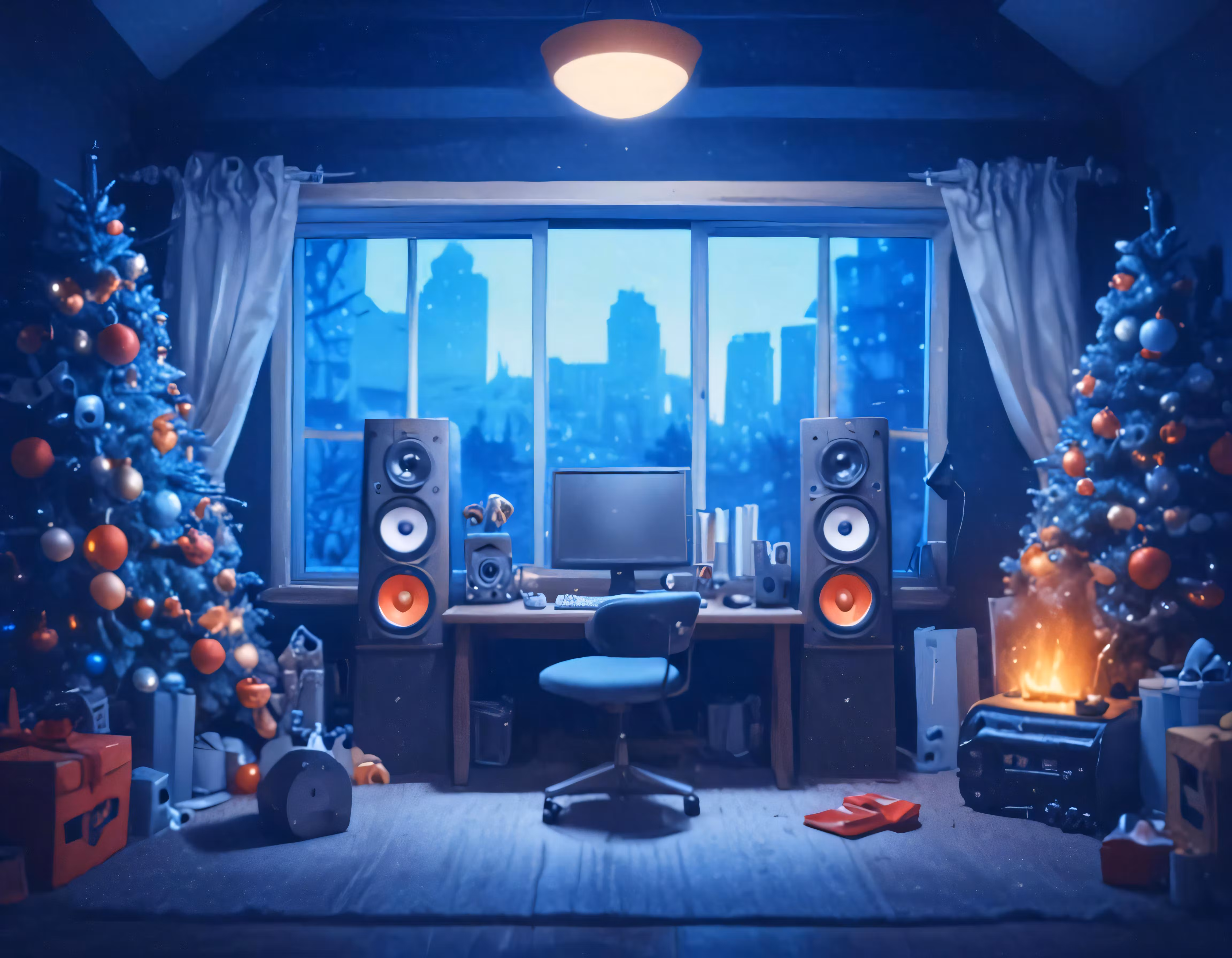High resolution picture, free to use, a computer with some ornaments in the corner