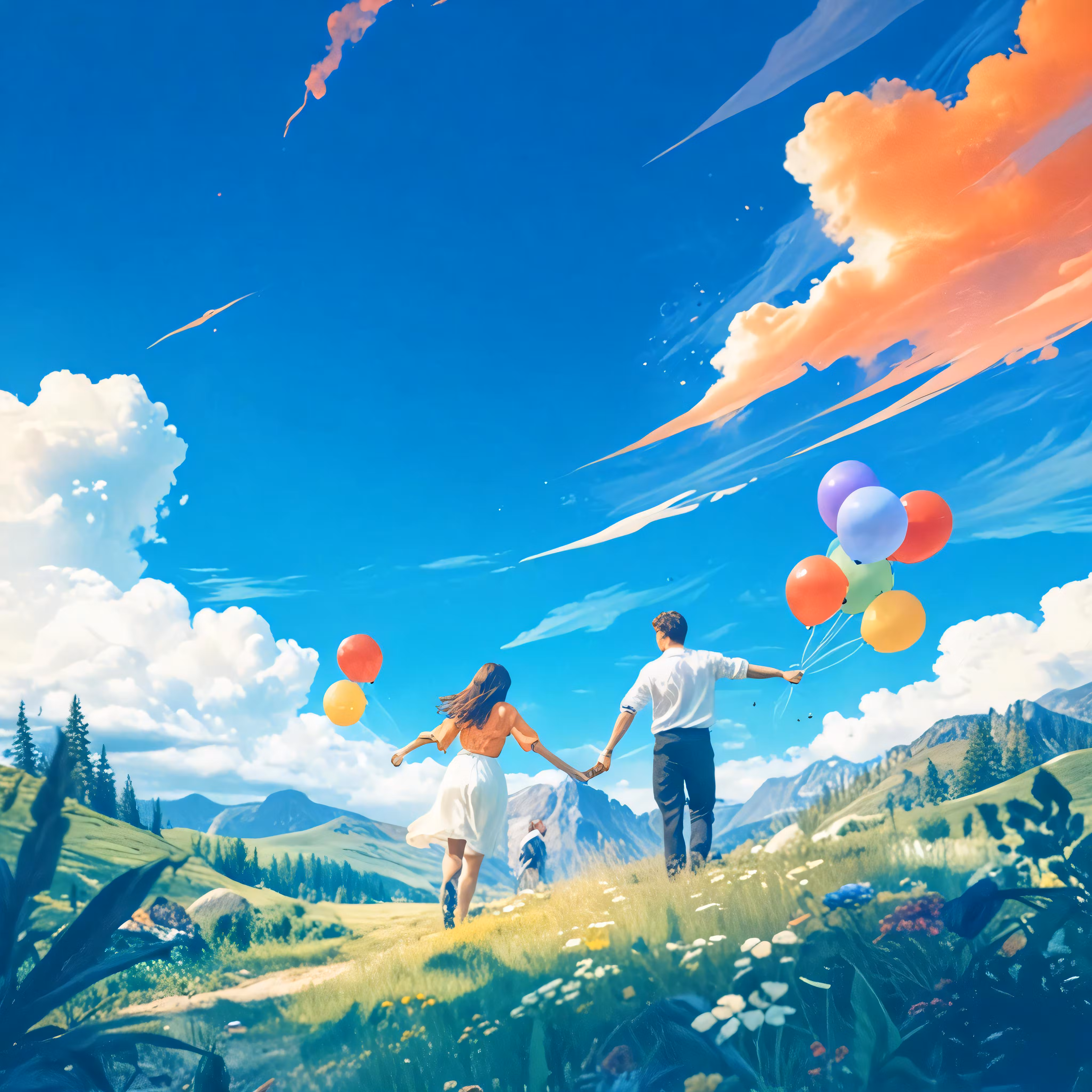 High resolution picture, free to use, a couple holding hands walking on a hill