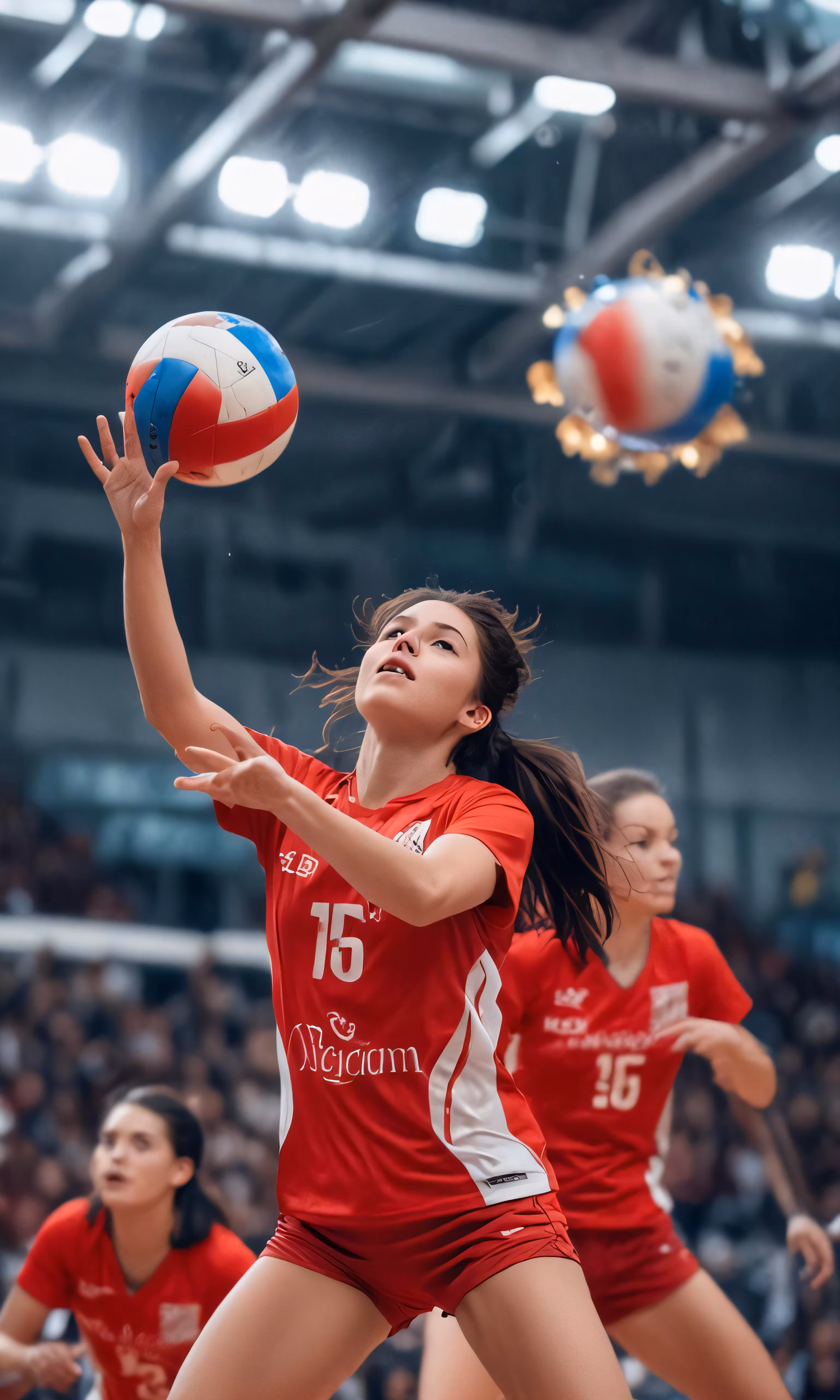 High resolution picture, free to use, a couple of young women playing a game of volleyball