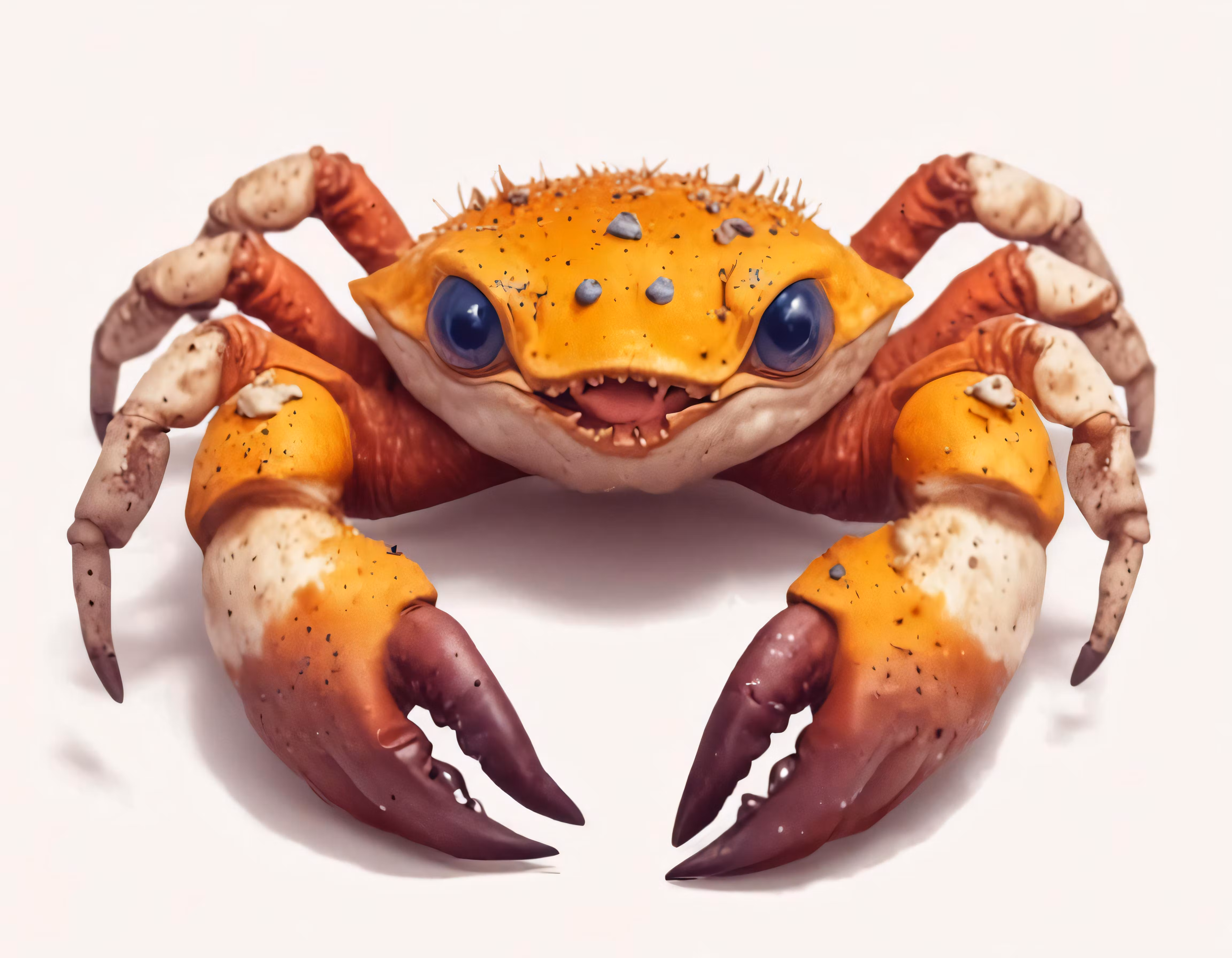 High resolution picture, free to use, a crab with orange and white fur and large claws
