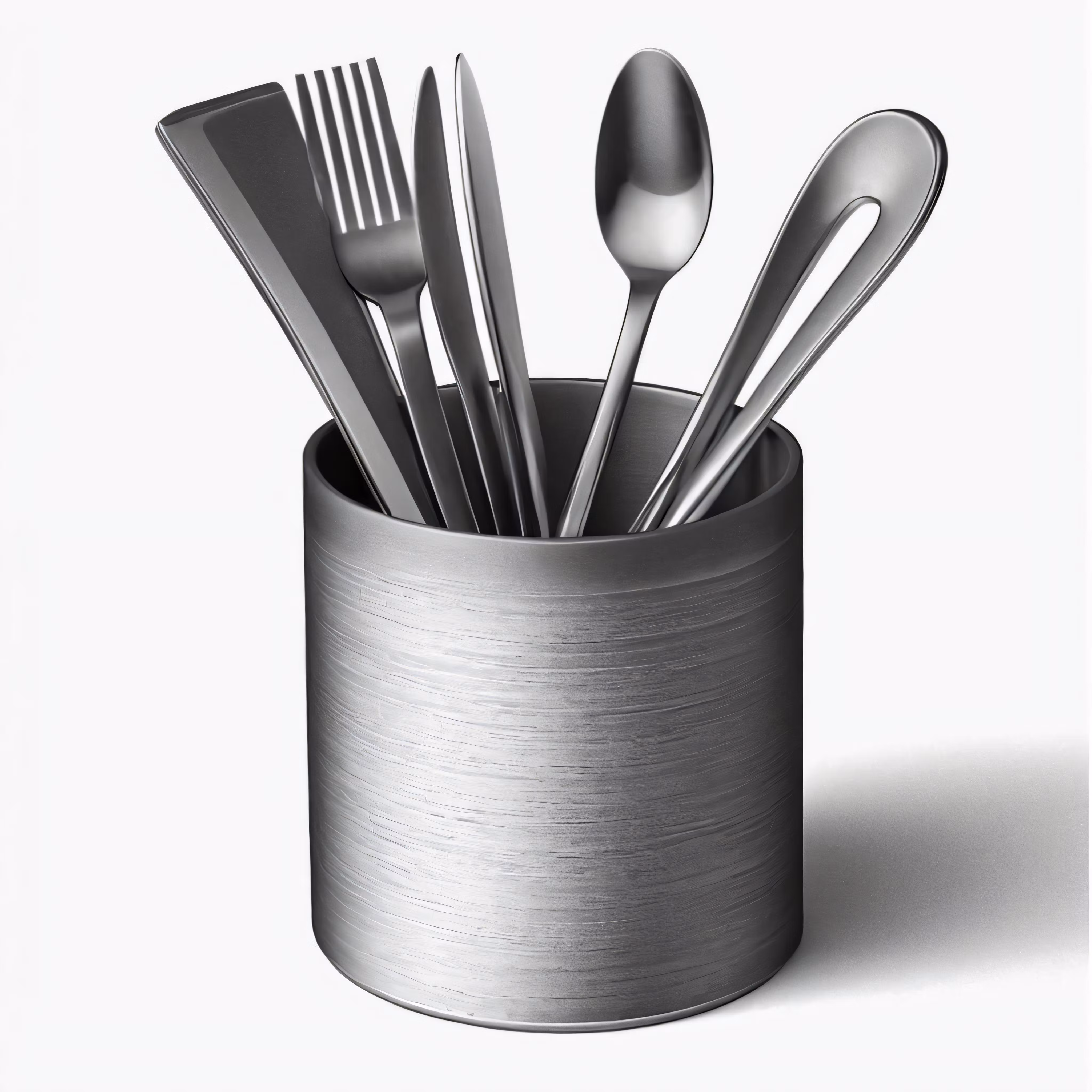 High resolution picture, free to use, a cup filled with silverware sitting on top of a white counter