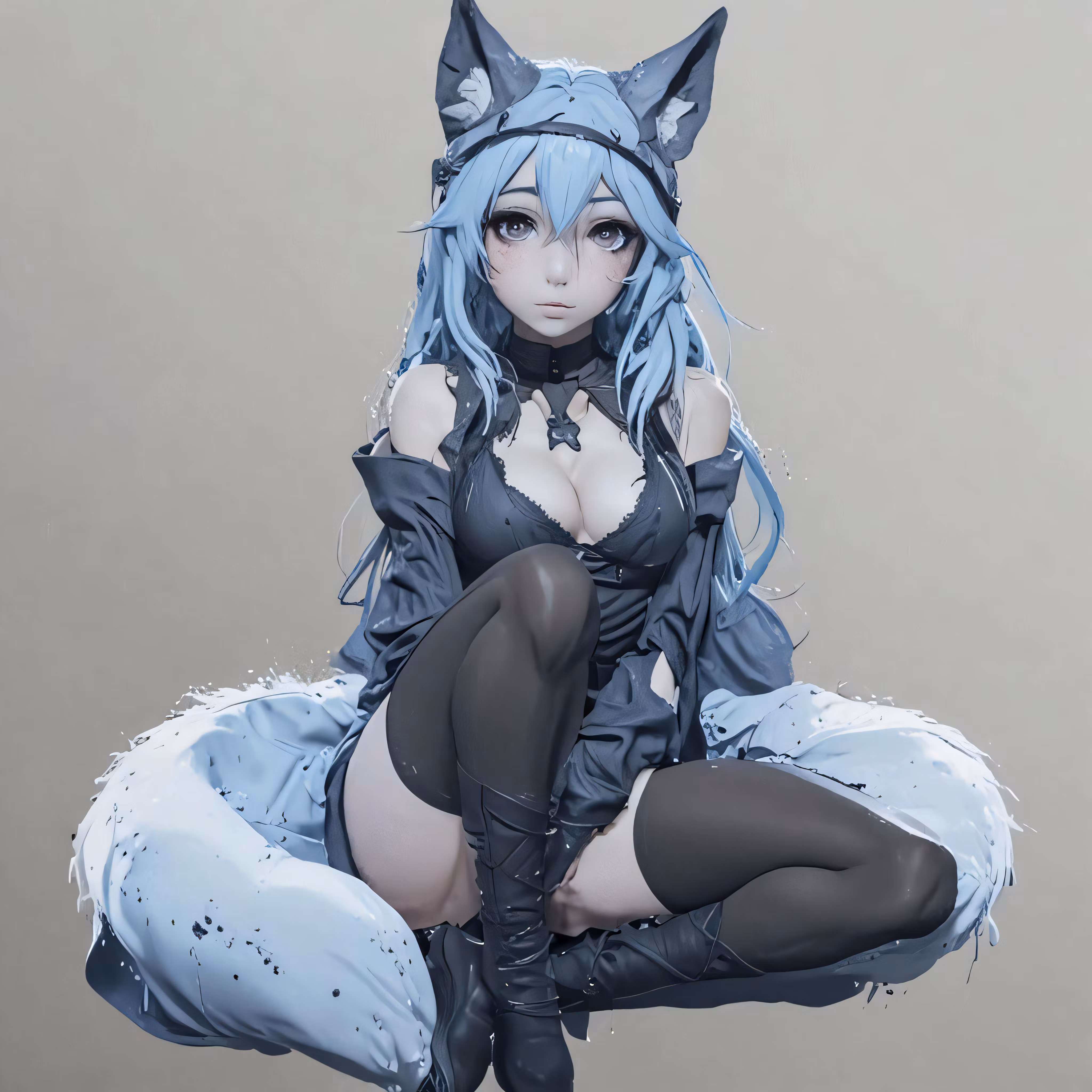 High resolution picture, free to use, a cute anime girl with cat ears and tail