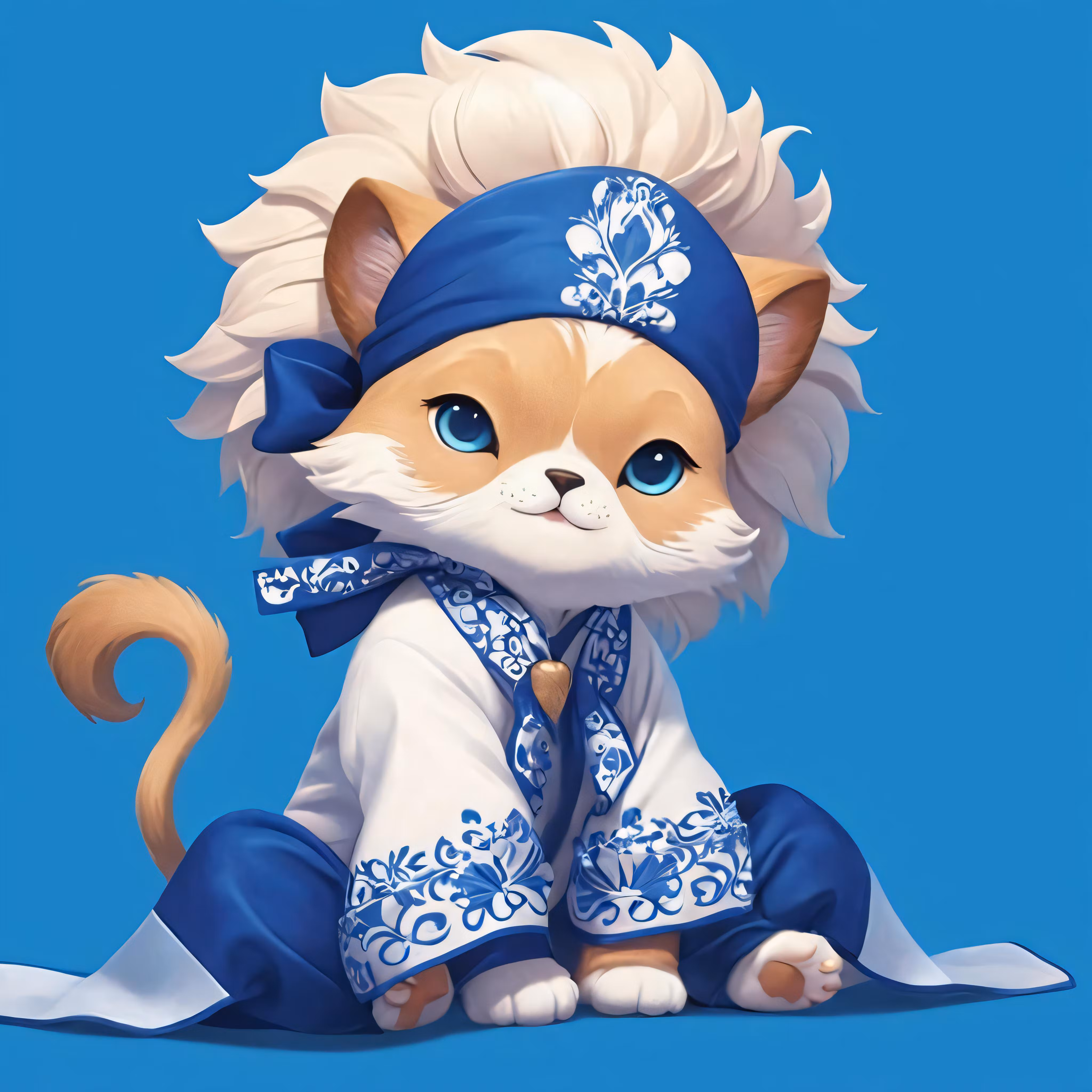 High resolution picture, free to use, a cute cat wearing blue and white clothing