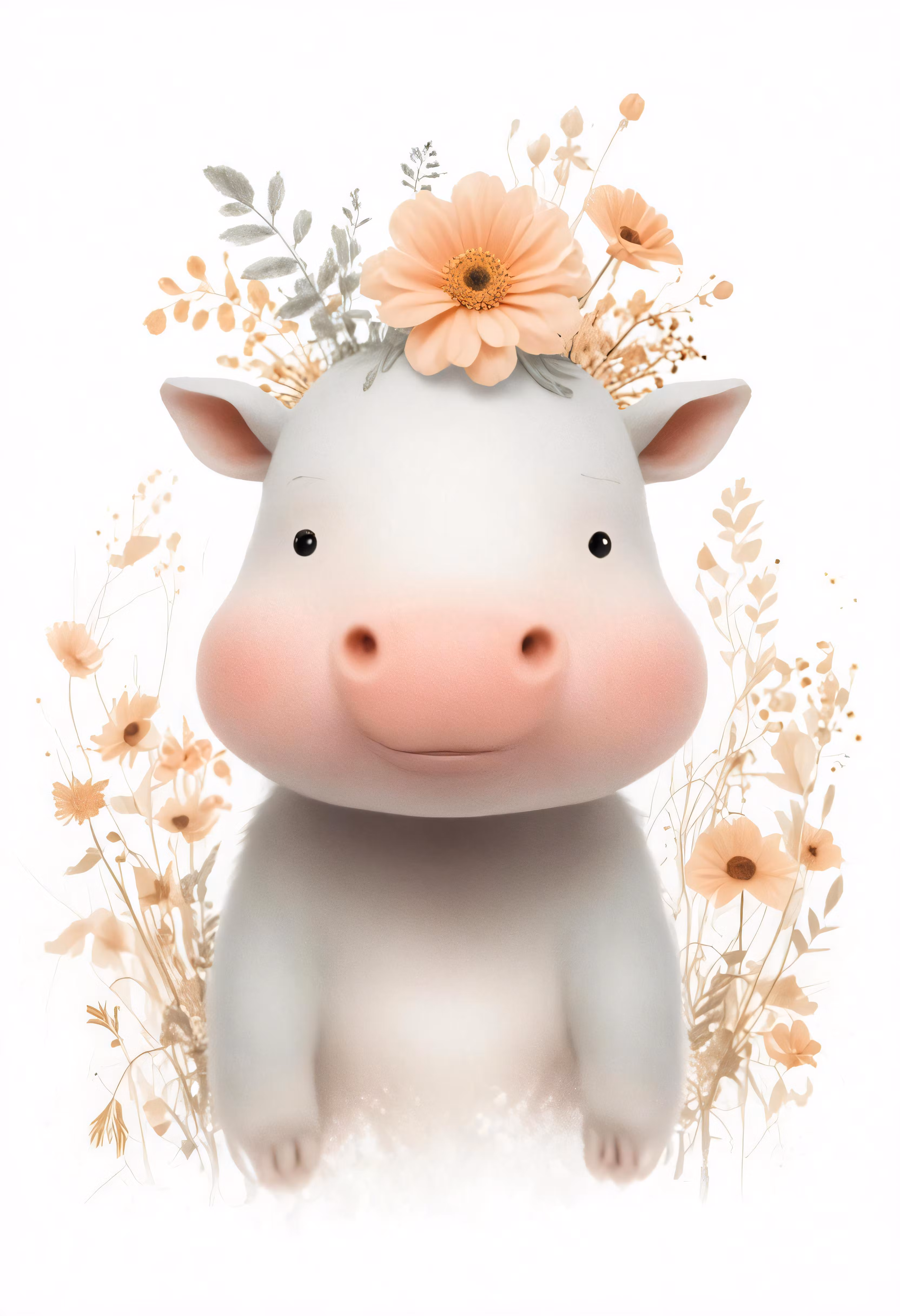High resolution picture, free to use, a cute little cow with a floral crown on her head