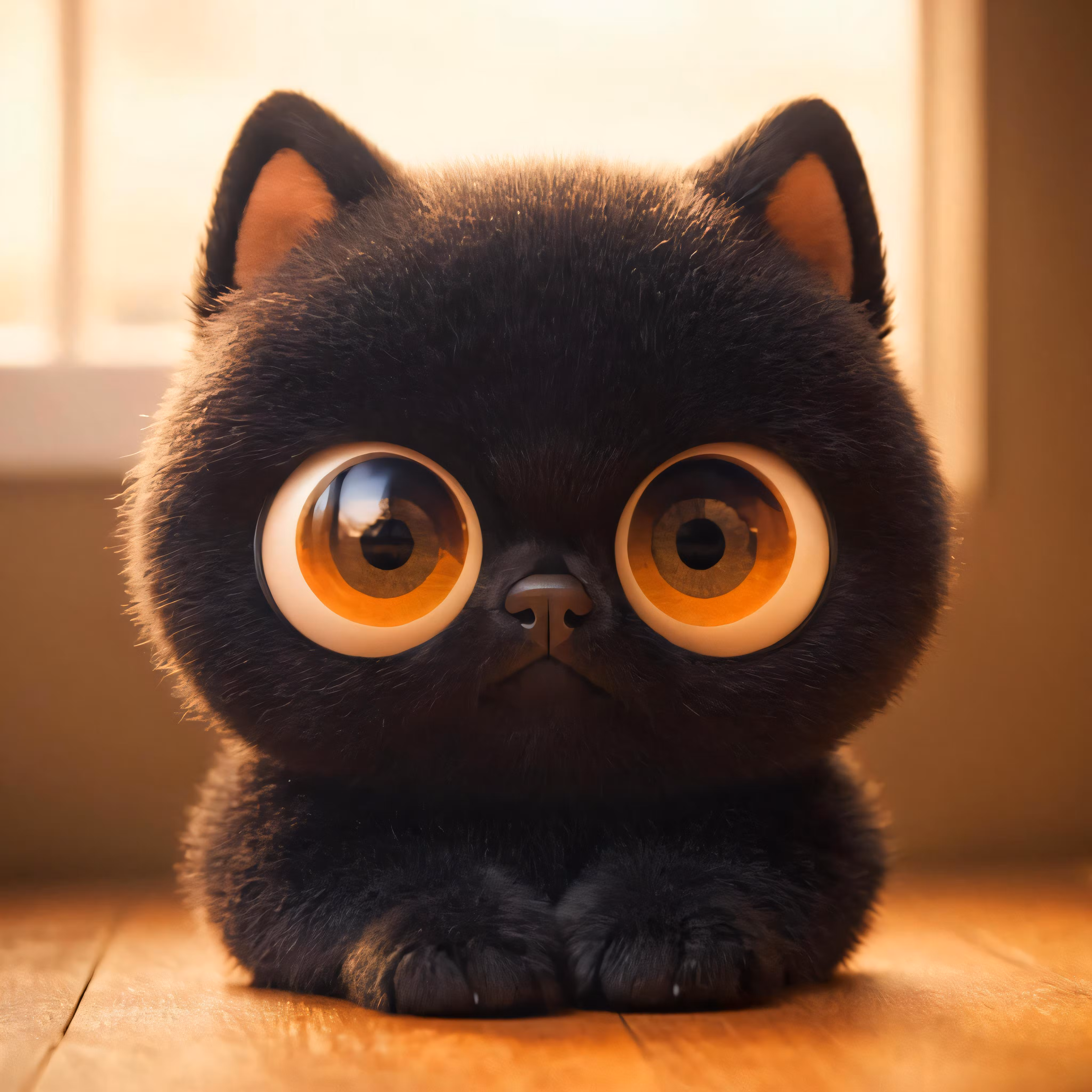 High resolution picture, free to use, a cute looking black kitten with a weird eye