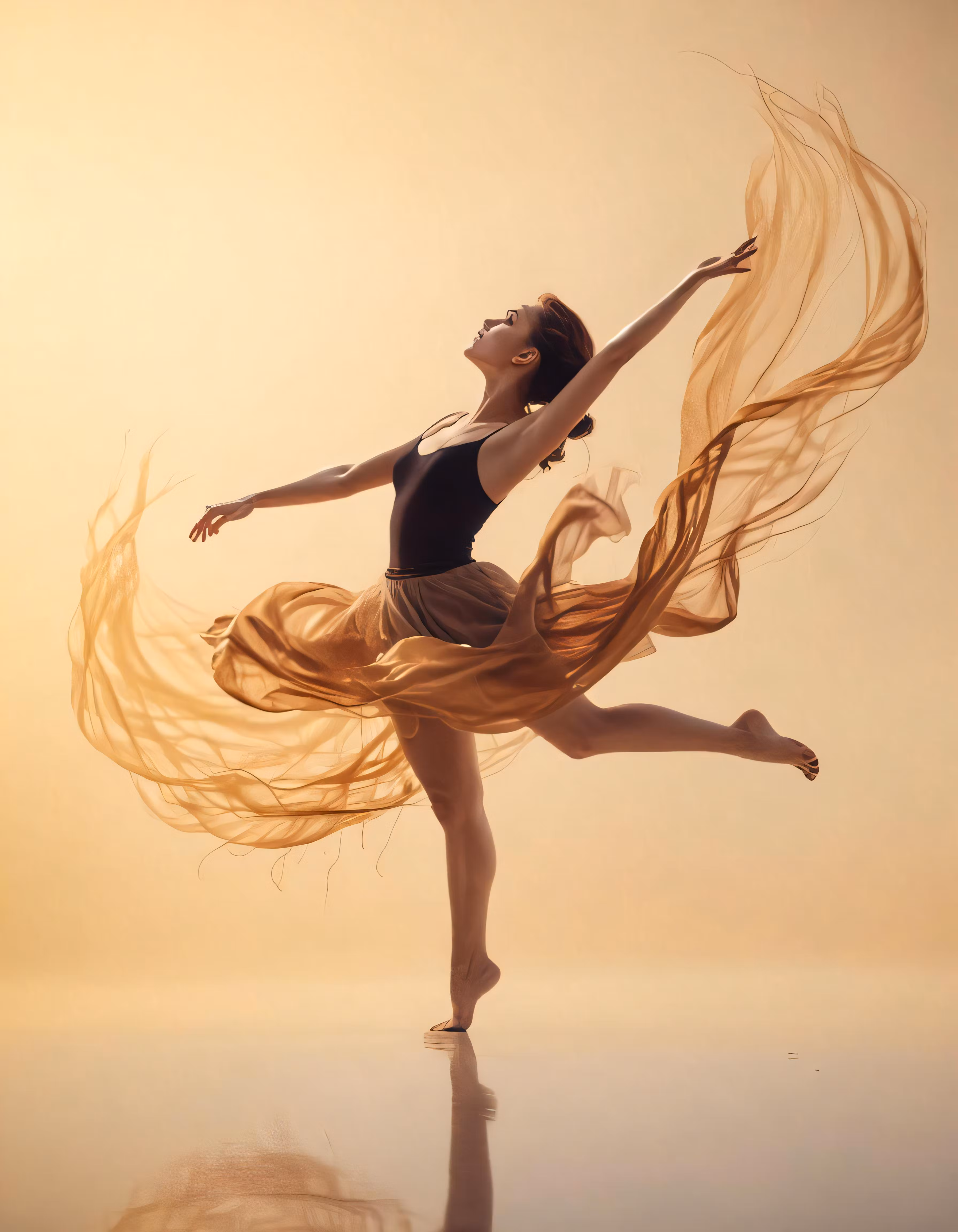 High resolution picture, free to use, a dancer is dressed in gold flowing hair