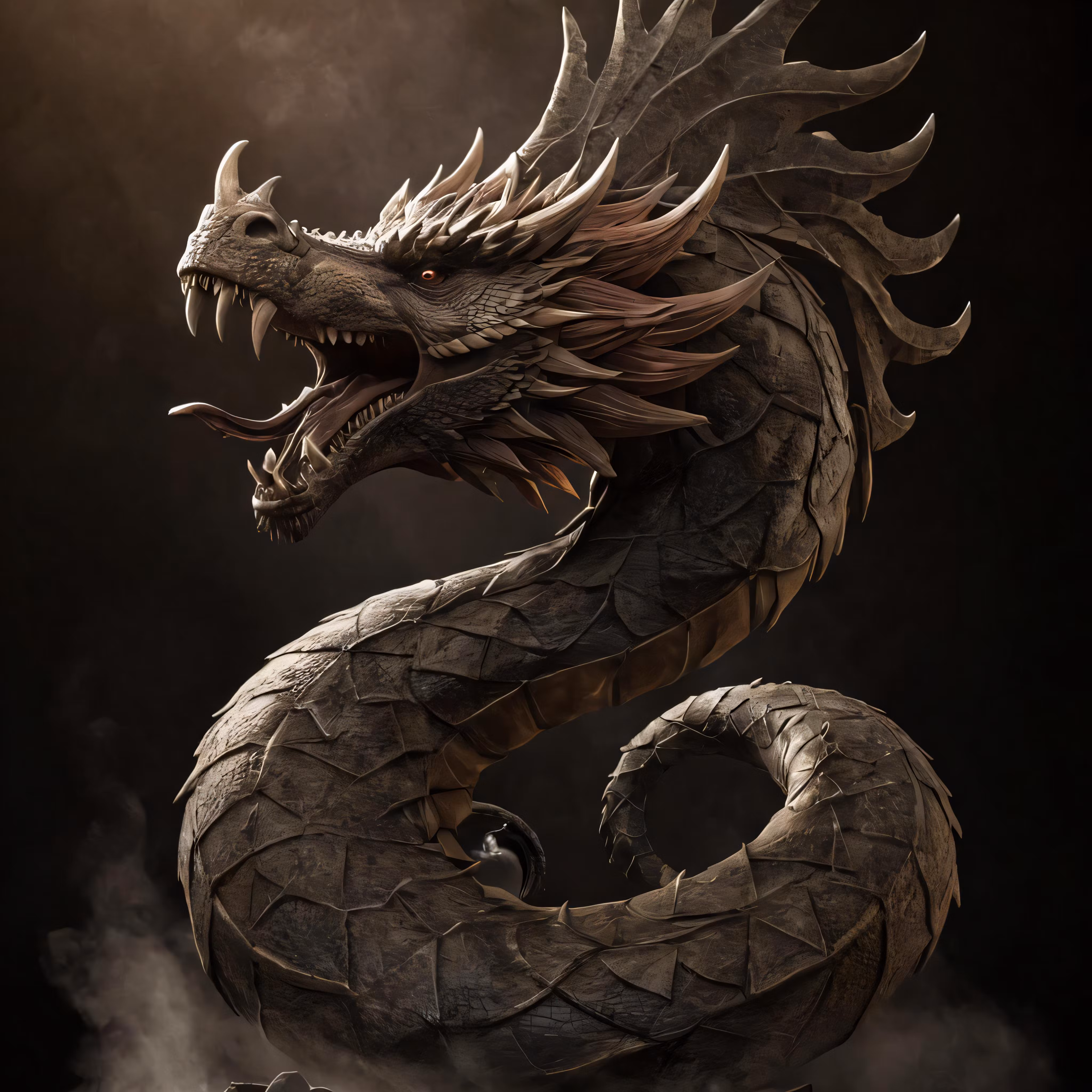 High resolution picture, free to use, a dark colored dragon with its mouth open