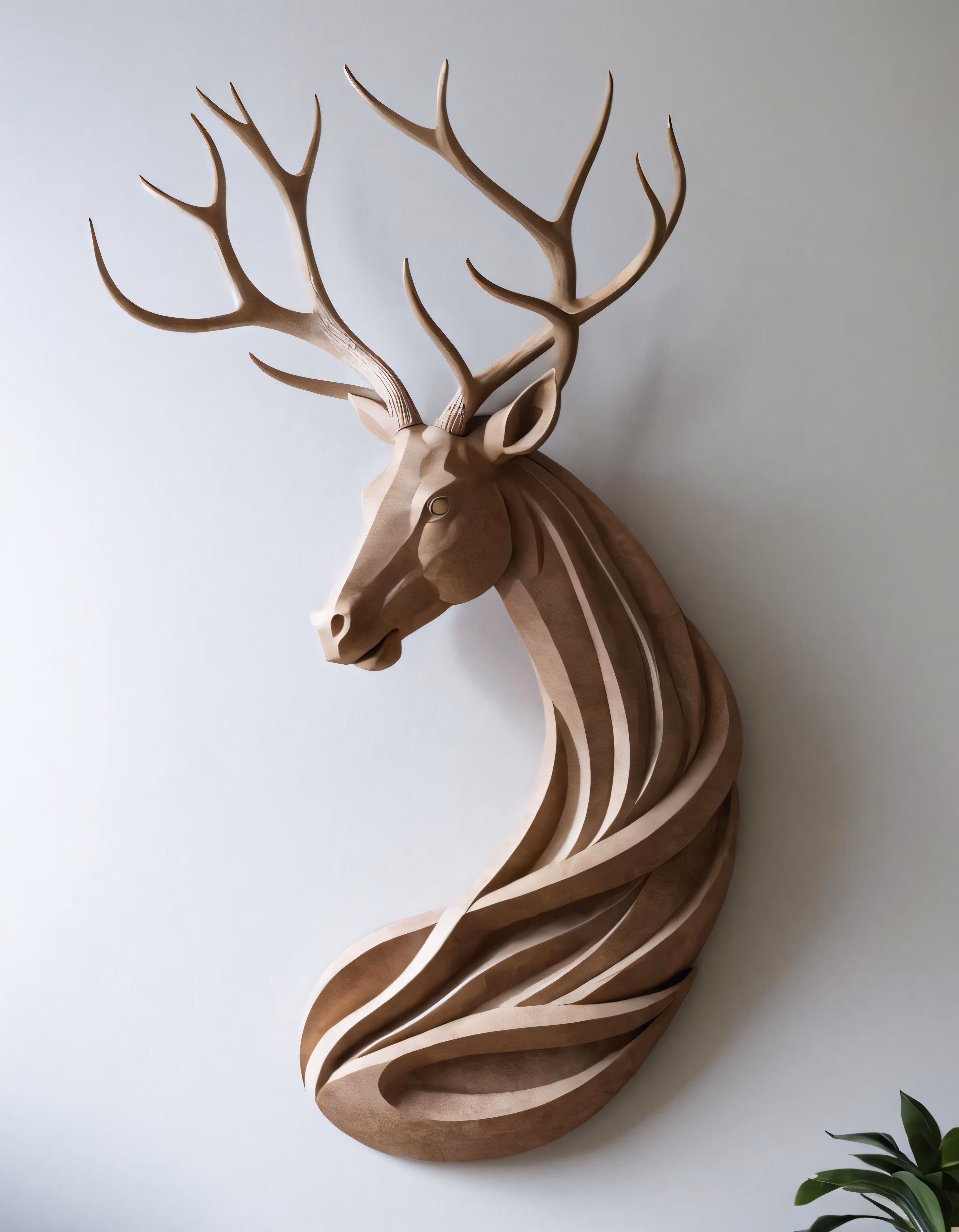 High resolution picture, free to use, a decorative wooden wall mounted deer with antlers