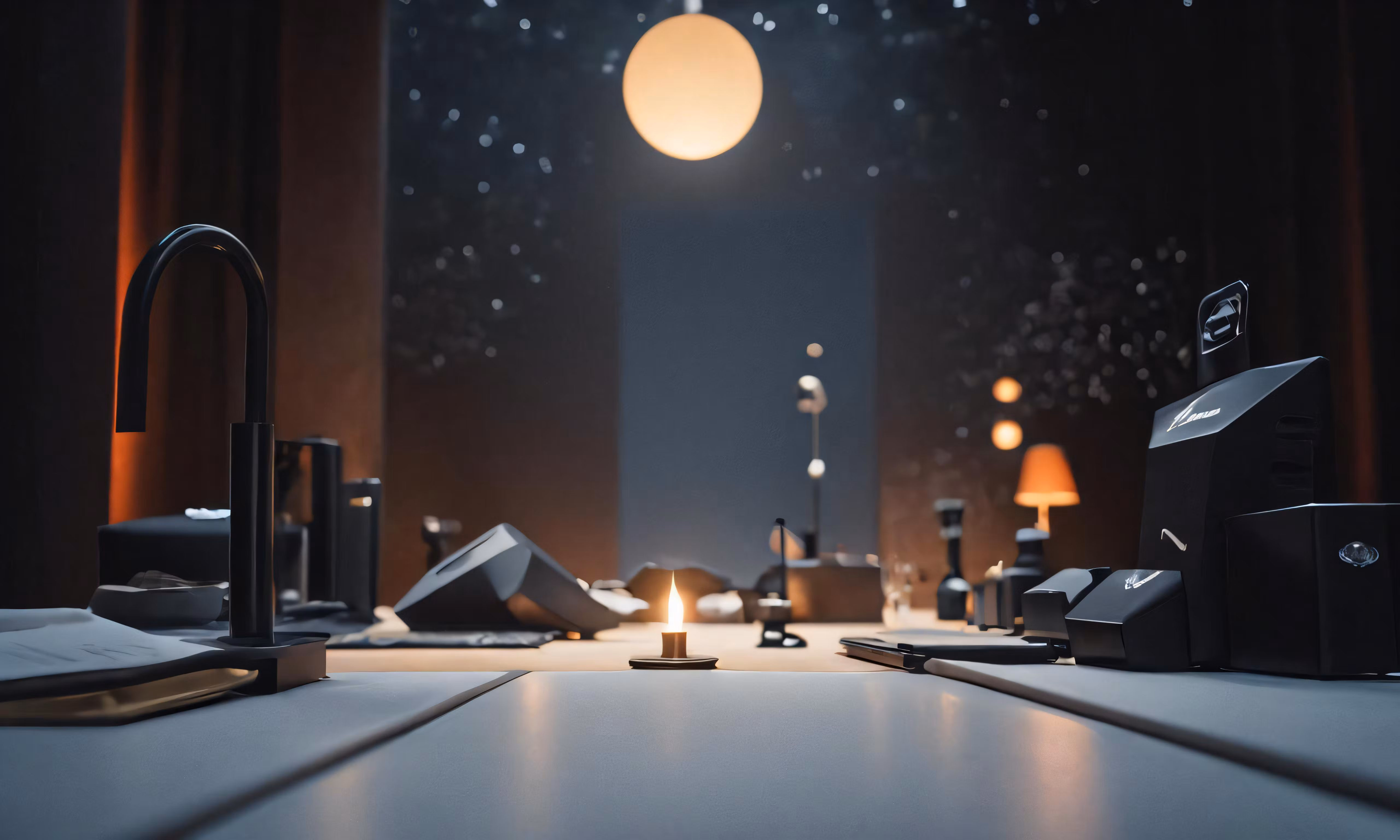 High resolution picture, free to use, a desk with some candles sitting on top of it