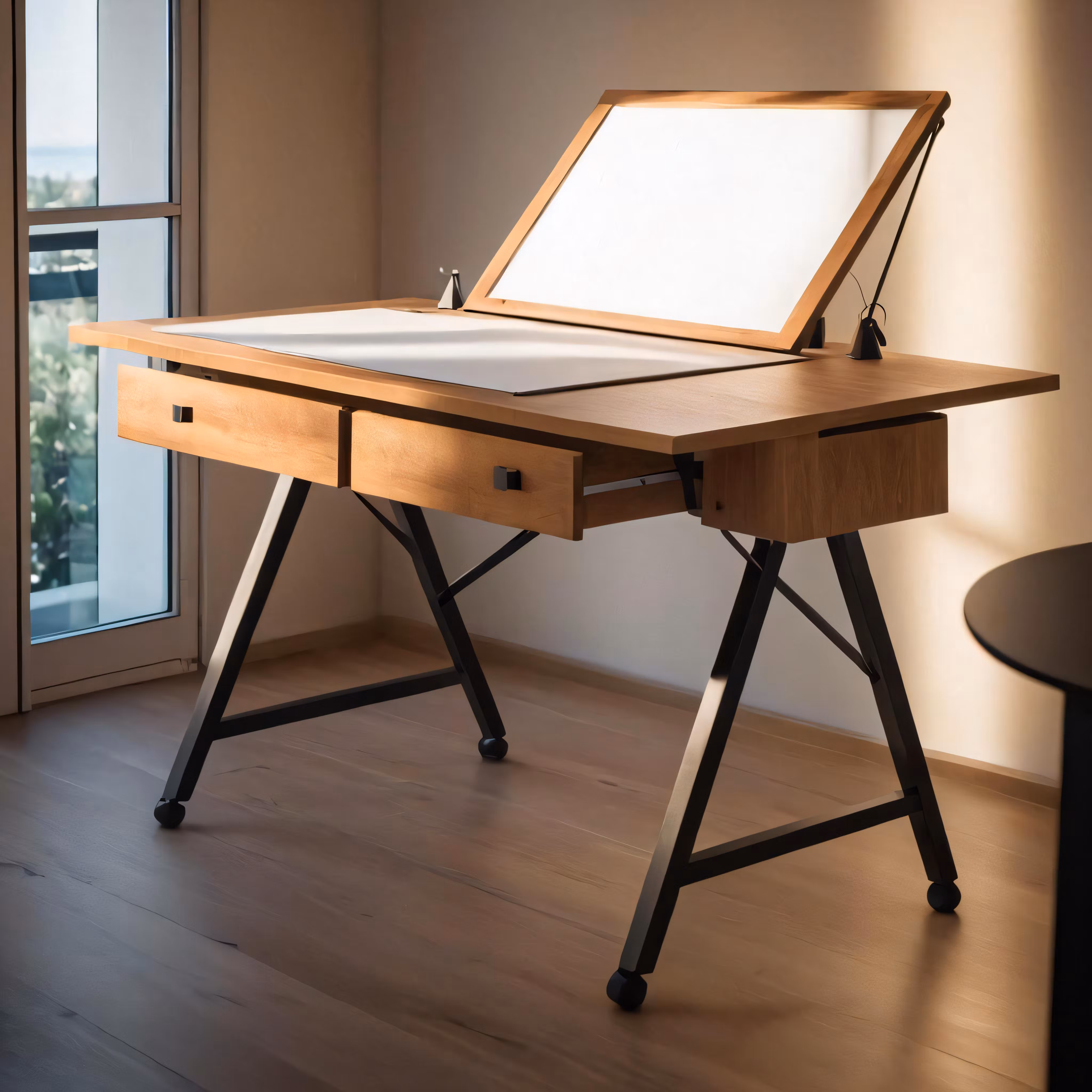High resolution picture, free to use, a desk with two drawers on top and a board underneath