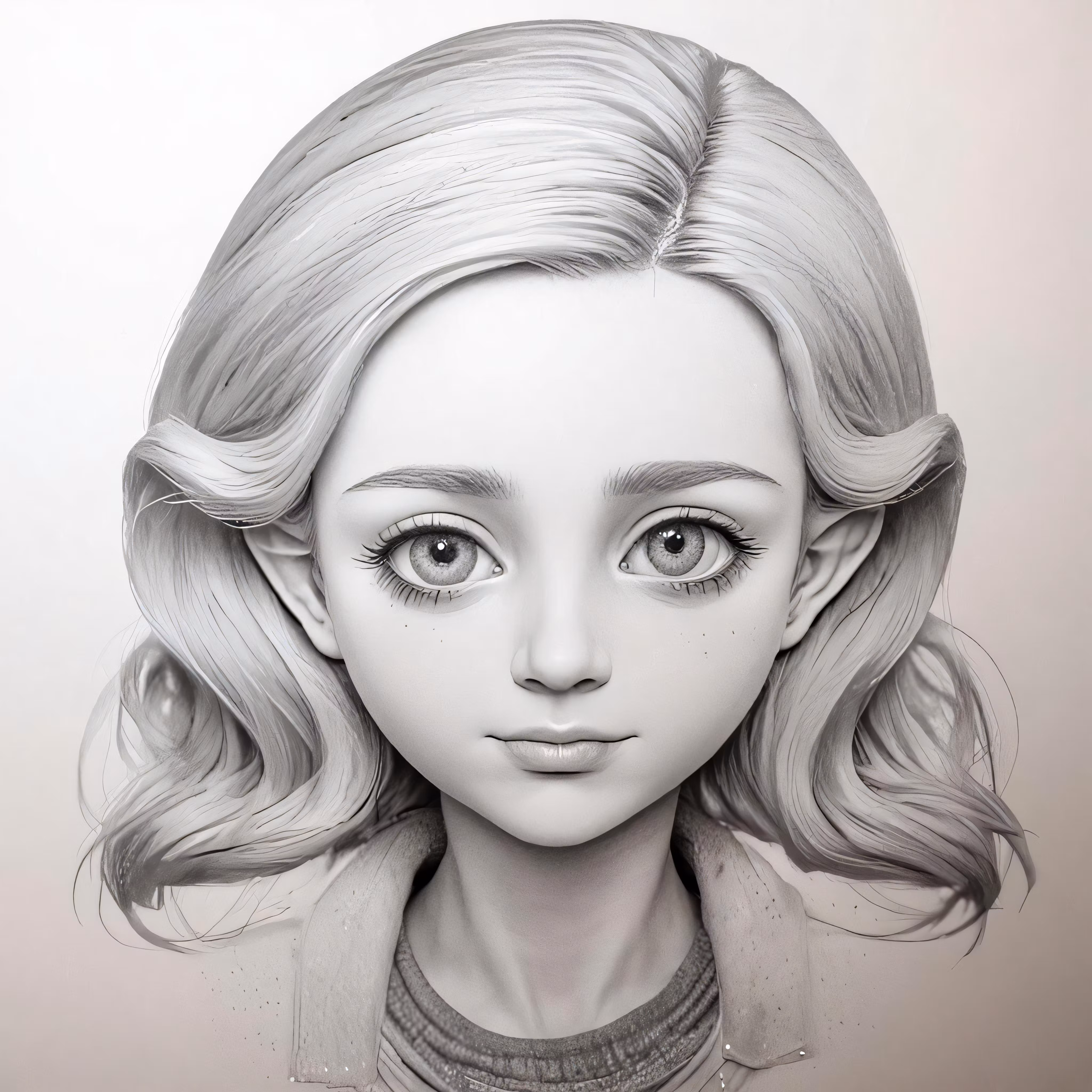 High resolution picture, free to use, a digital drawing of a doll with long hair