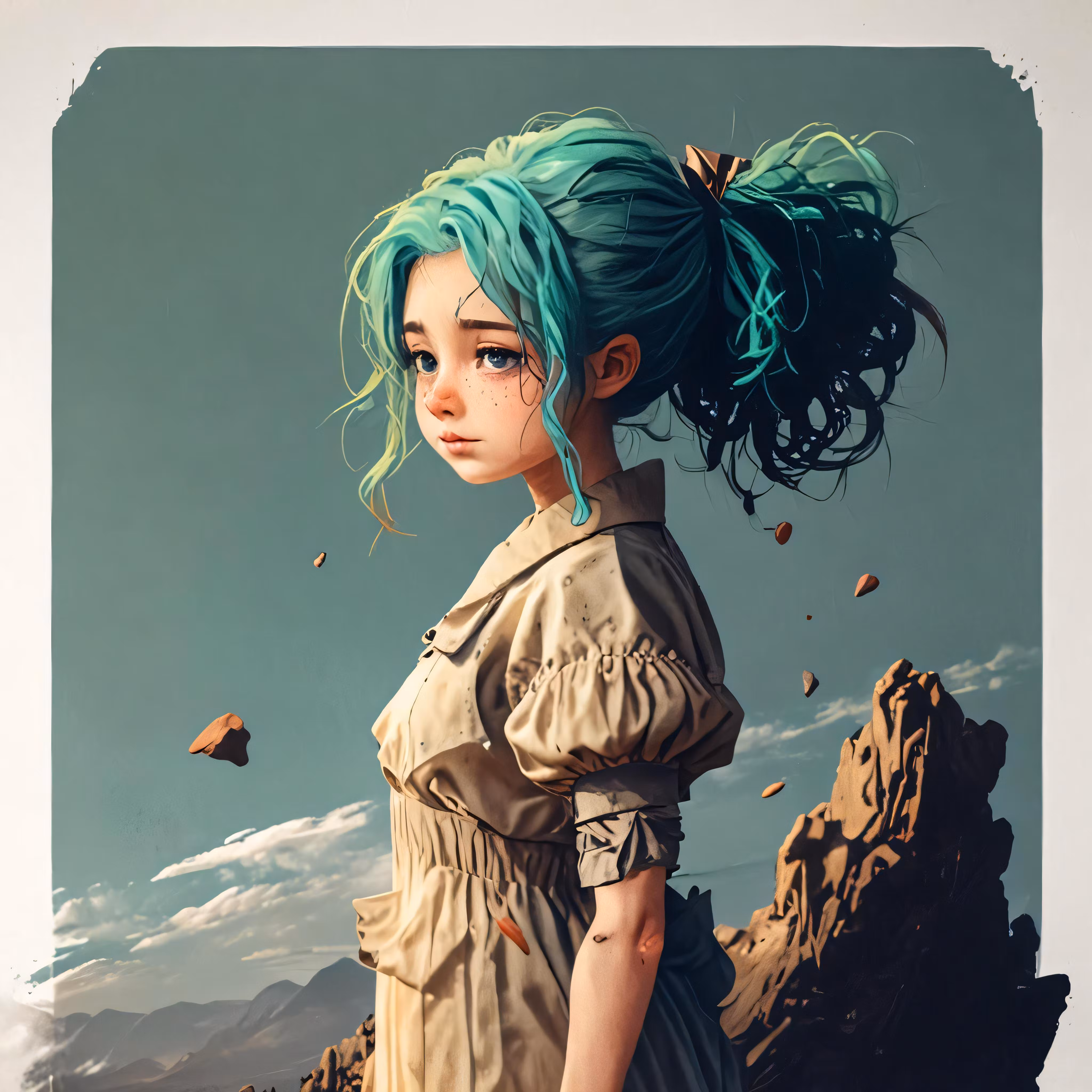 High resolution picture, free to use, a digital painting of a woman with blue hair