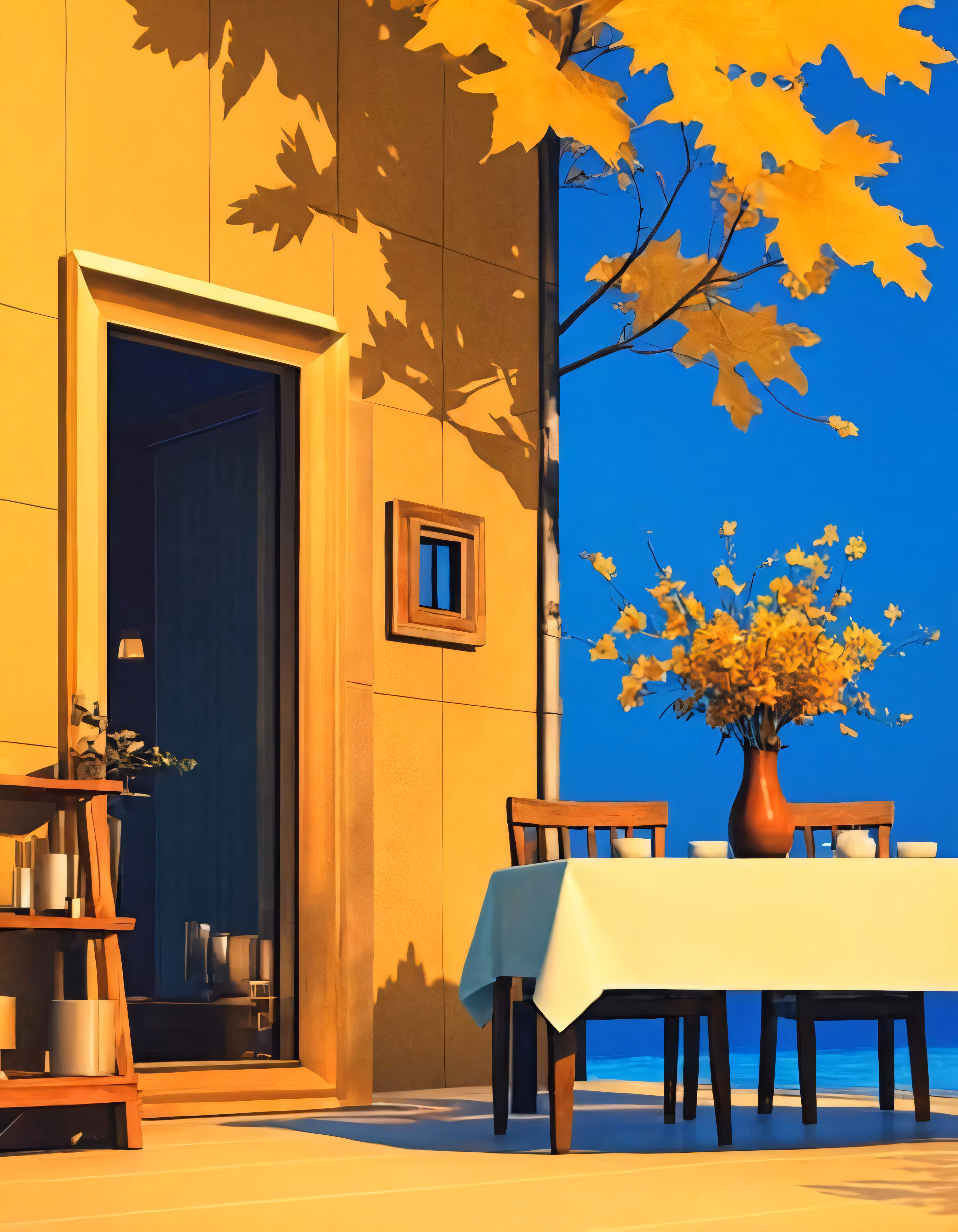 High resolution picture, free to use, a dinner table set up outside in front of an entrance