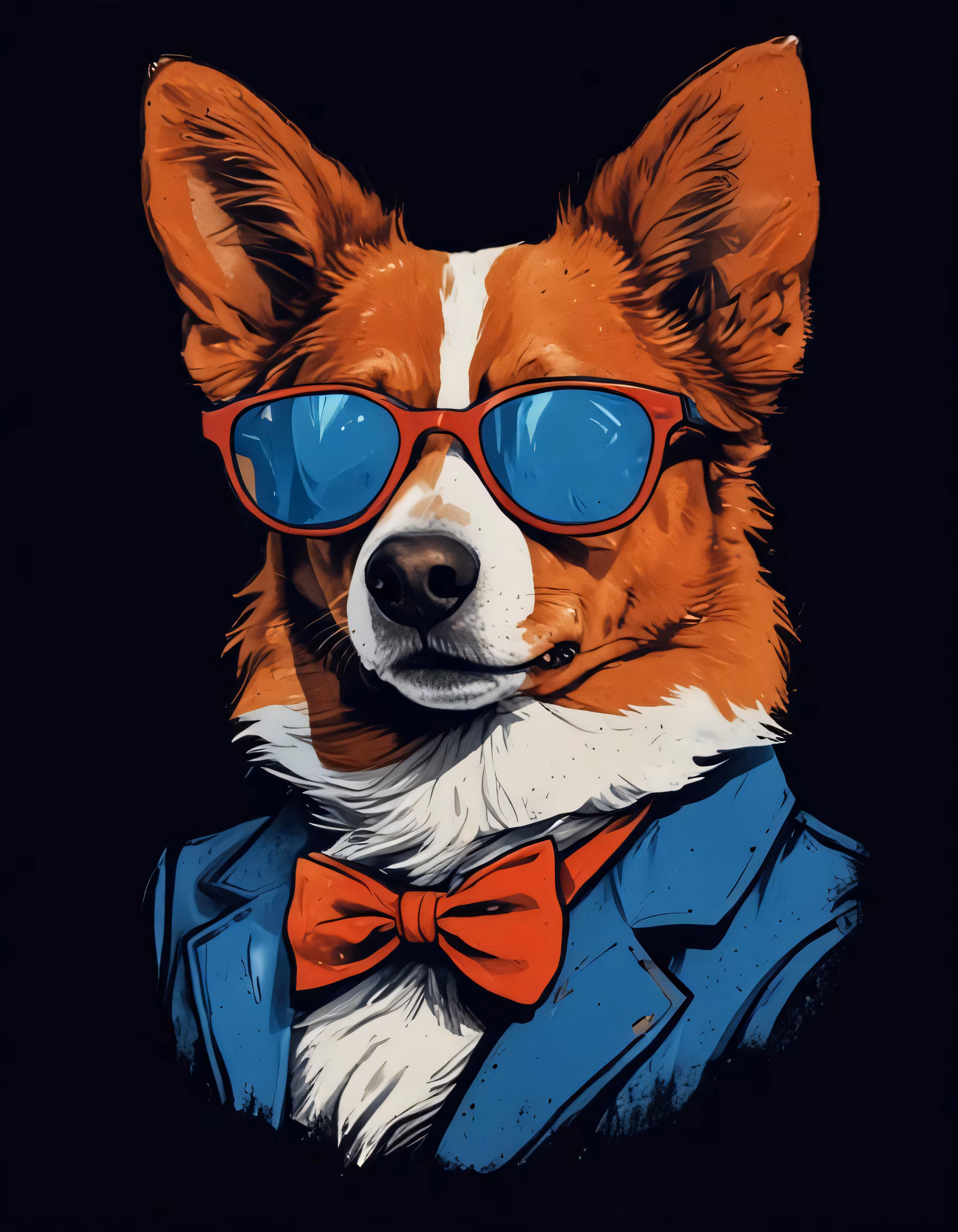 High resolution picture, free to use, a dog wearing glasses and a bow tie