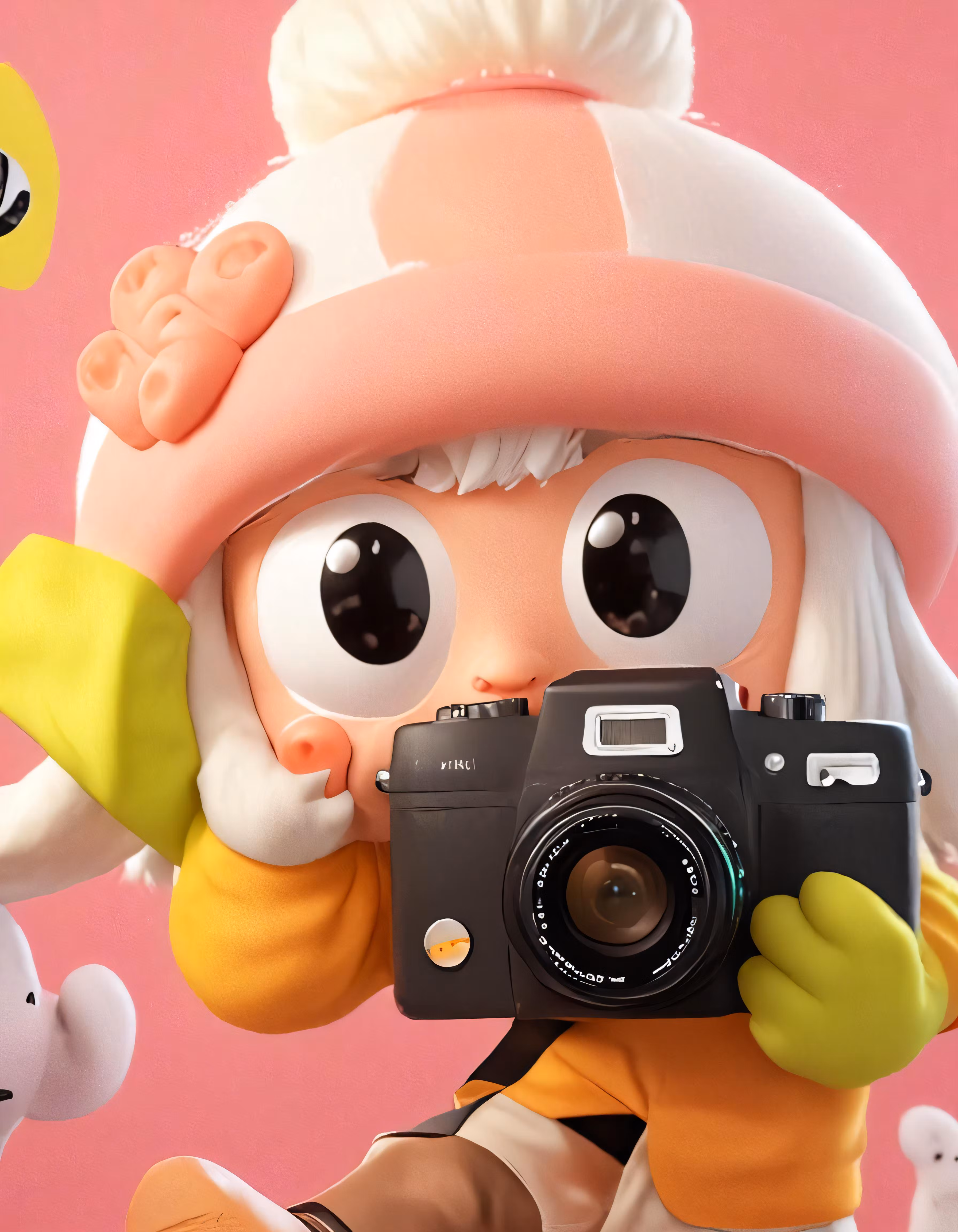 High resolution picture, free to use, a doll holding a camera taking a picture