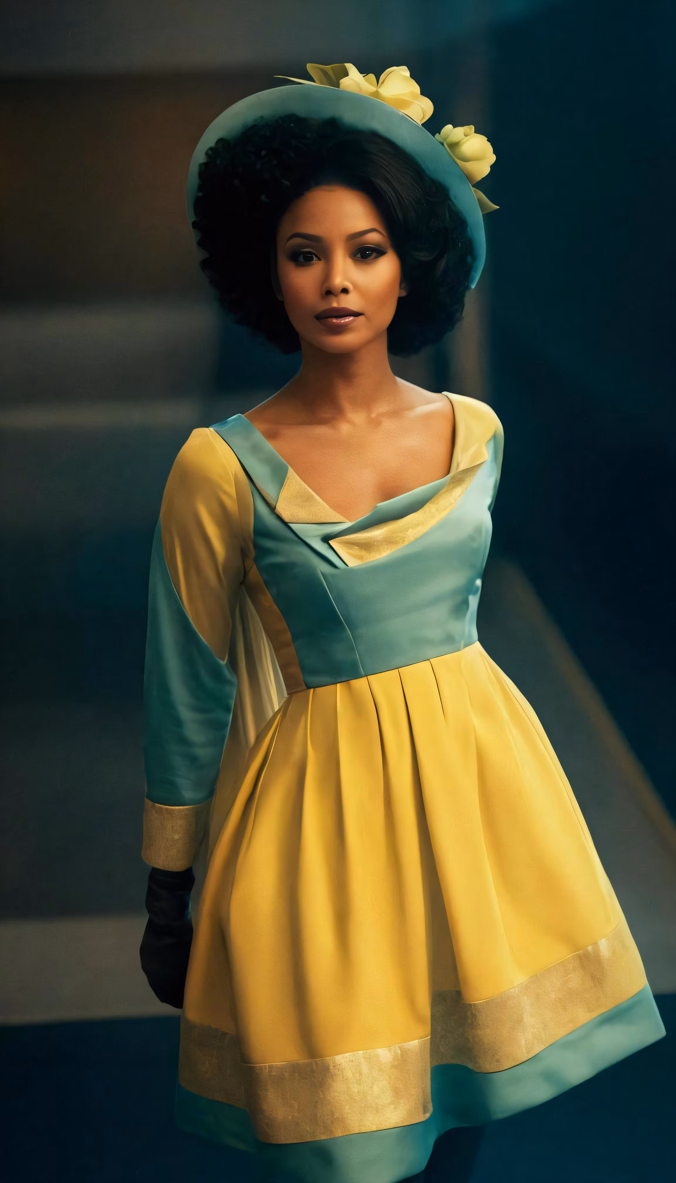 High resolution picture, free to use, a doll with a hat and dress stands in a room