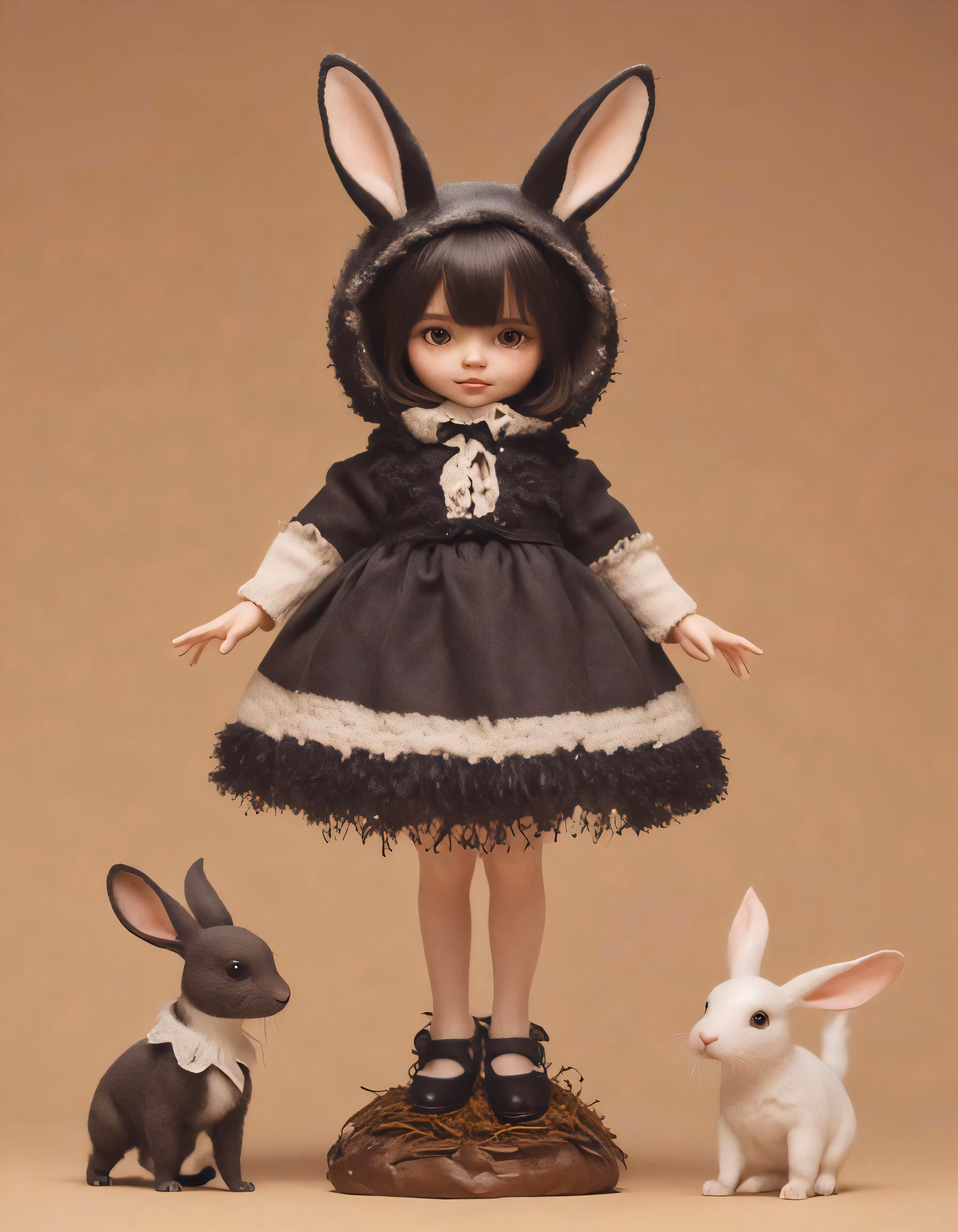 High resolution picture, free to use, a doll with a rabbit costume and two other dolls