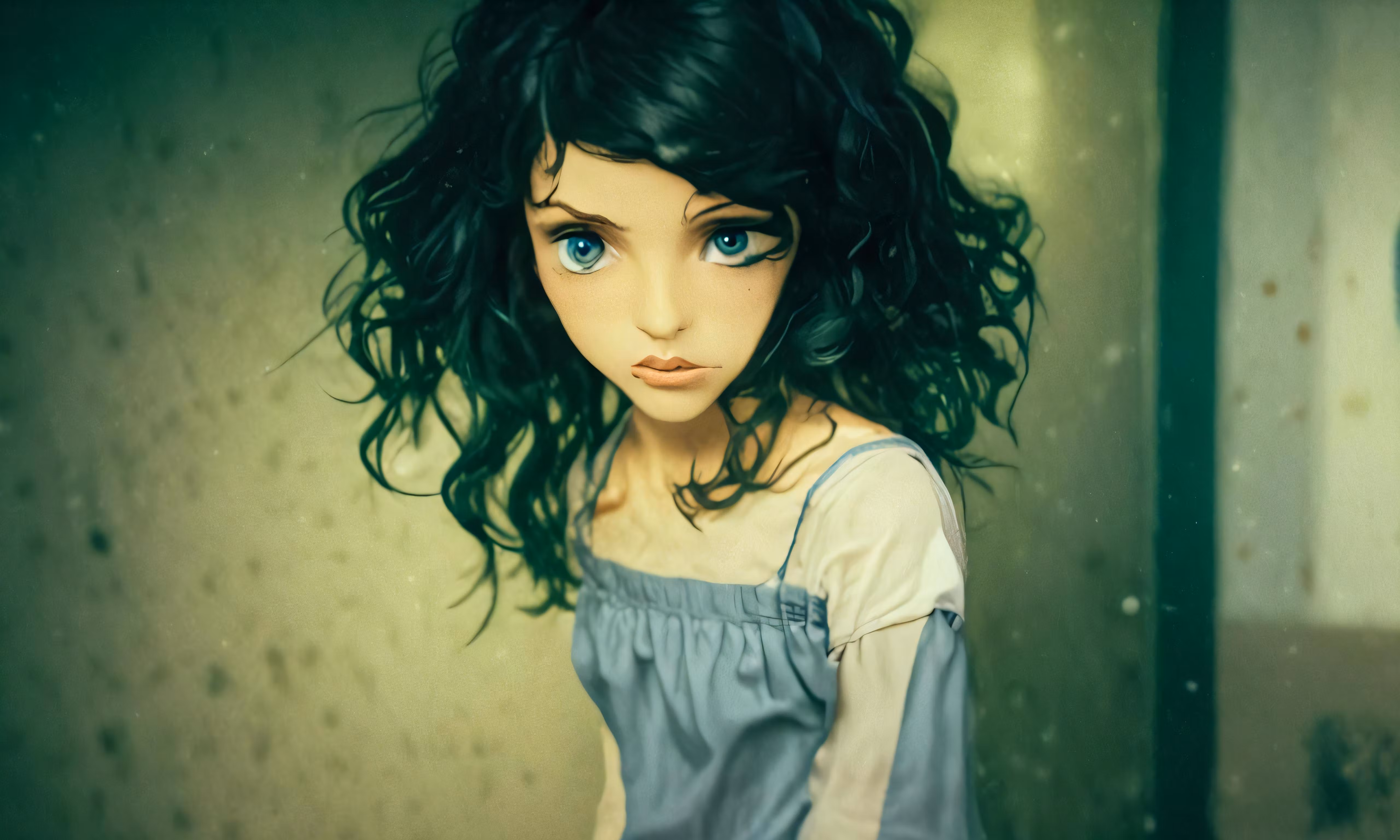 High resolution picture, free to use, a doll with blue eyes wearing a dress