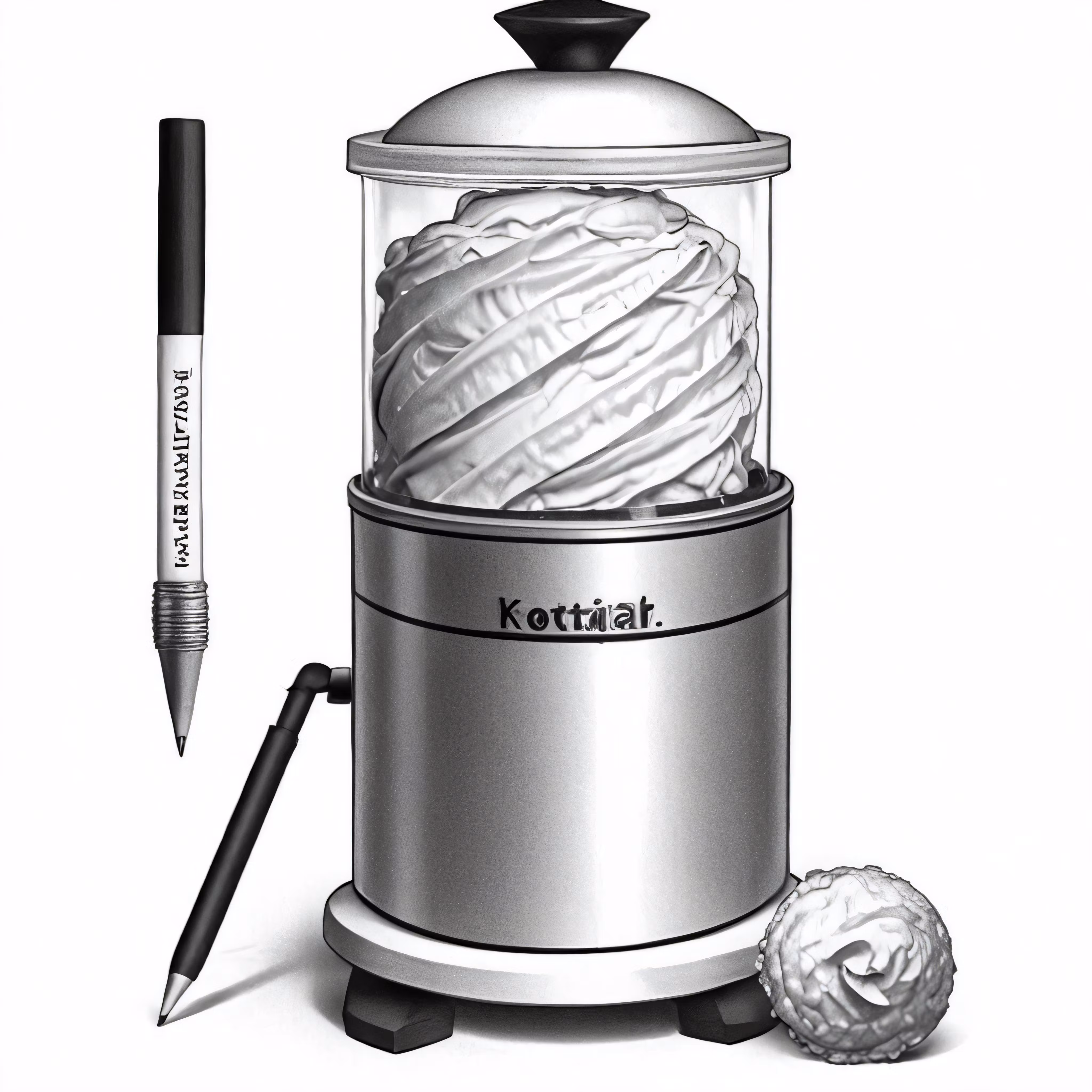 High resolution picture, free to use, a drawing of a ball of yarn sitting in a crayon jar