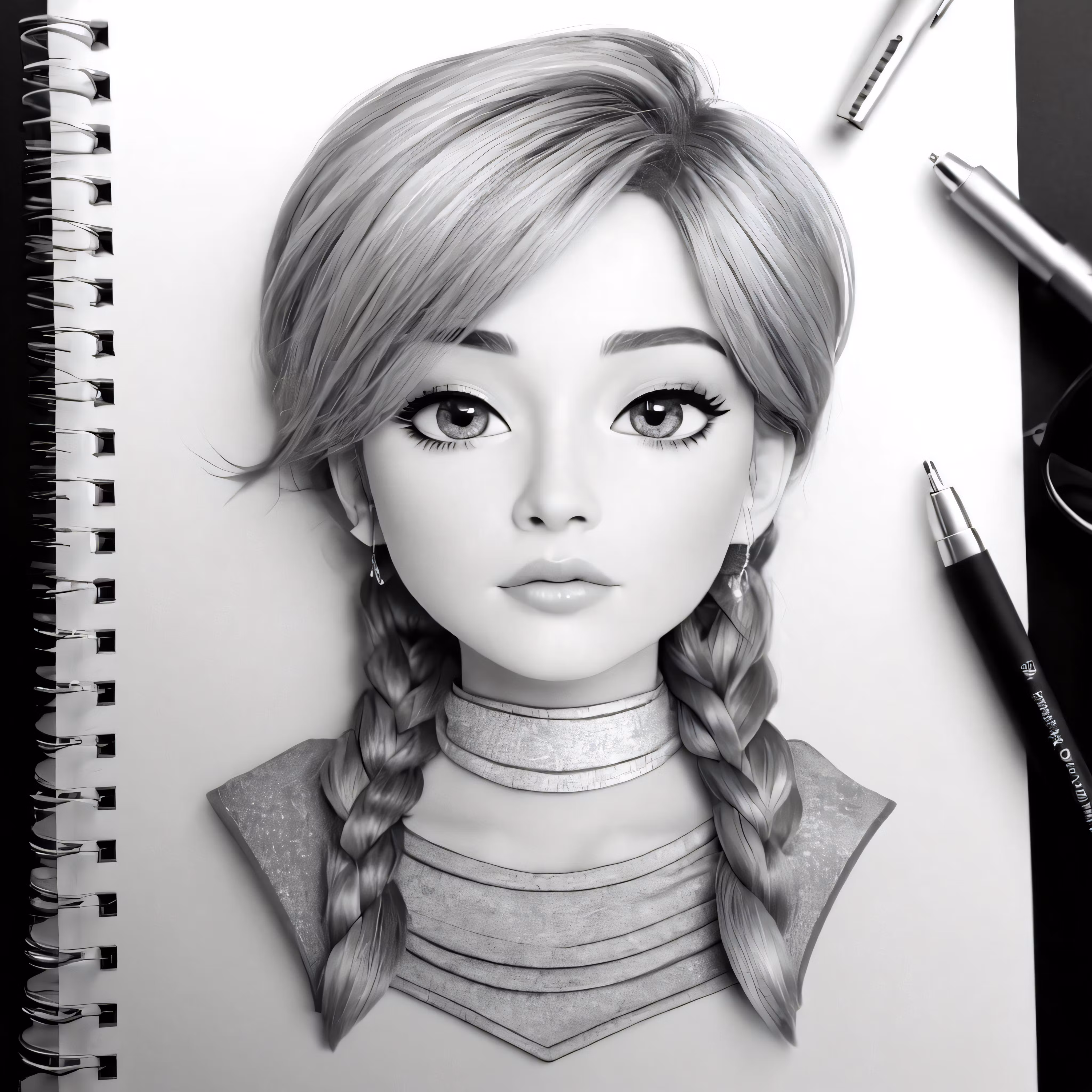High resolution picture, free to use, a drawing of a blonde girl with braids and eyeliner