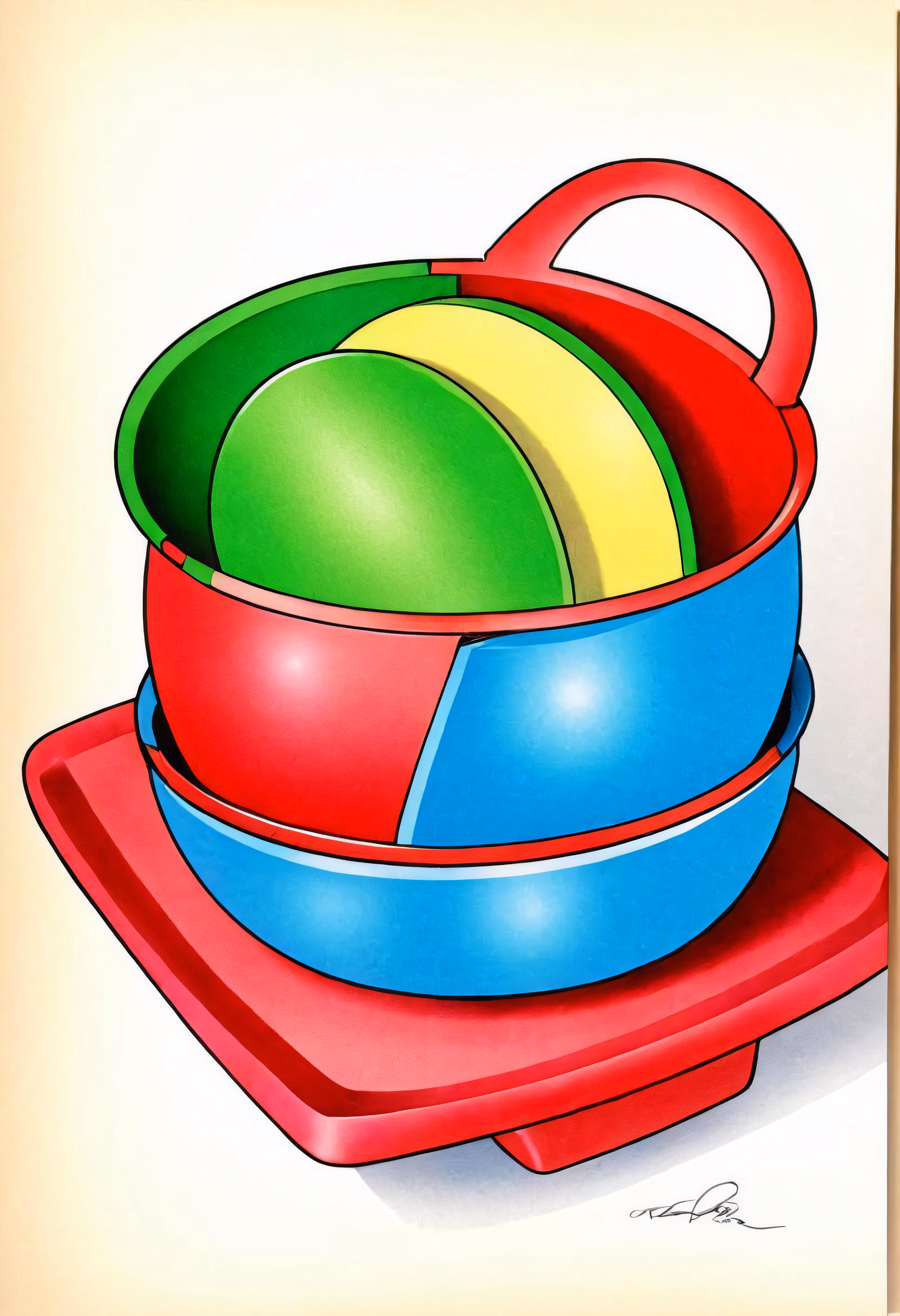 High resolution picture, free to use, a drawing of a bowl of bowls and plates