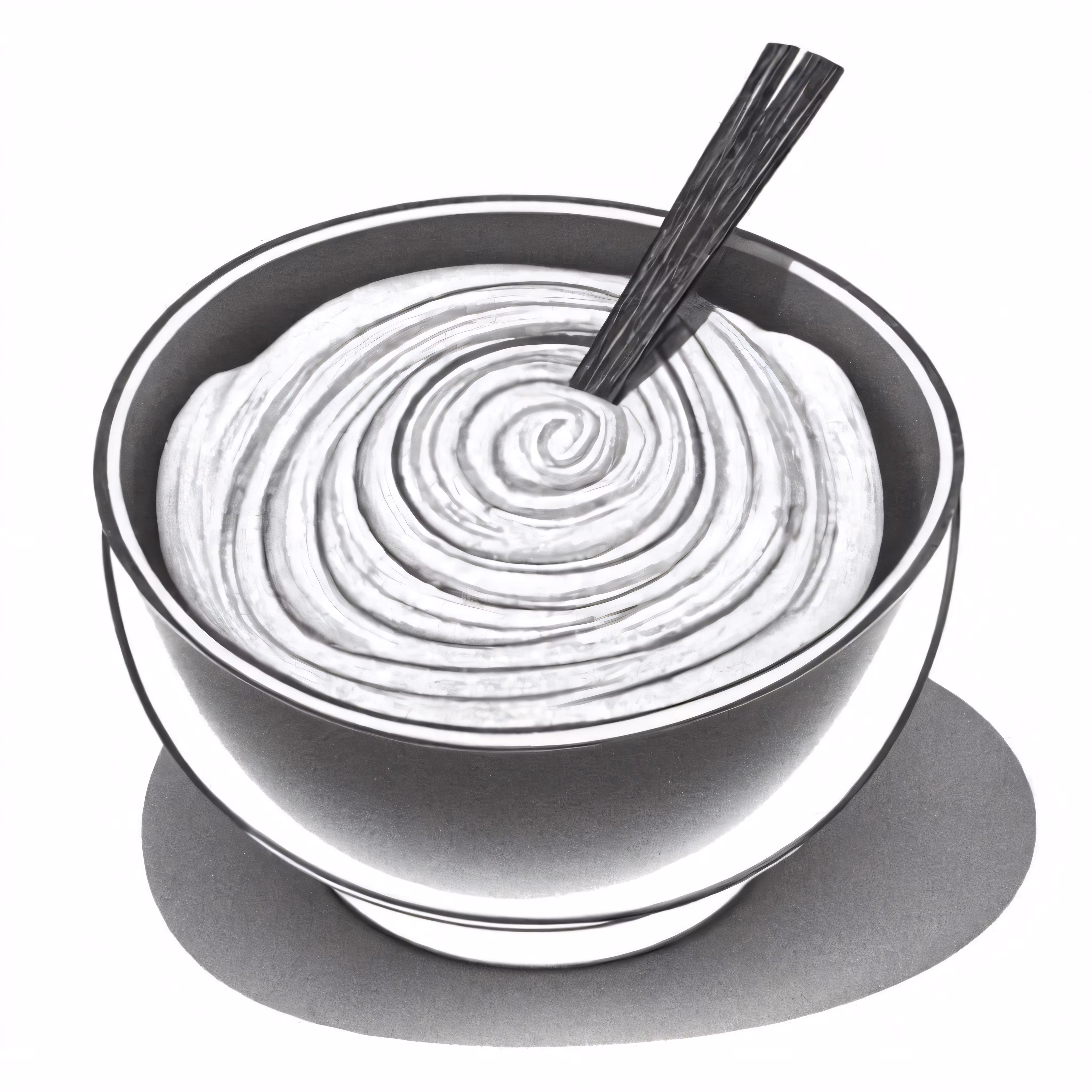 High resolution picture, free to use, a drawing of a bowl of dip with two large sticks