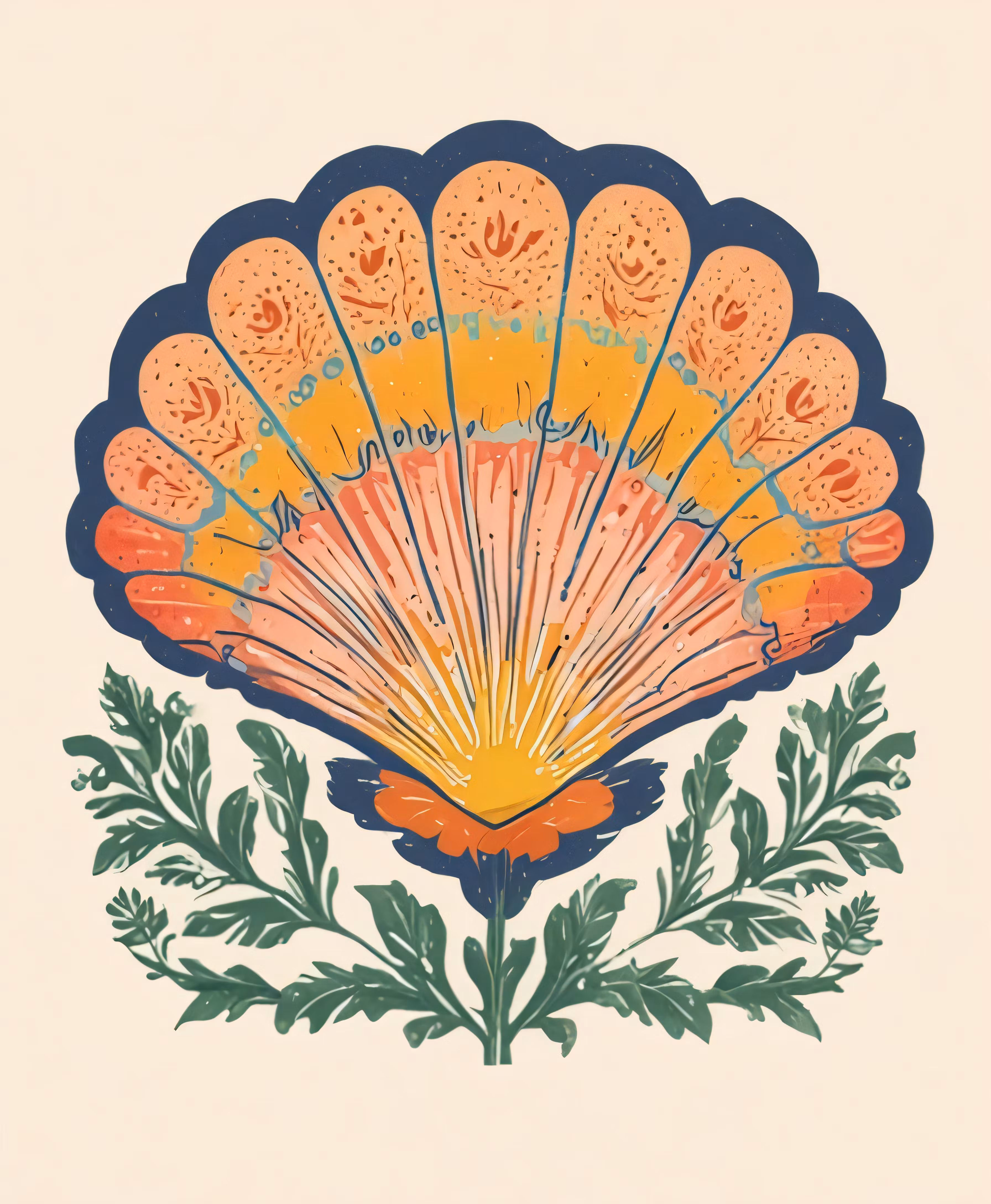 High resolution picture, free to use, a drawing of a colorful coral on a light background