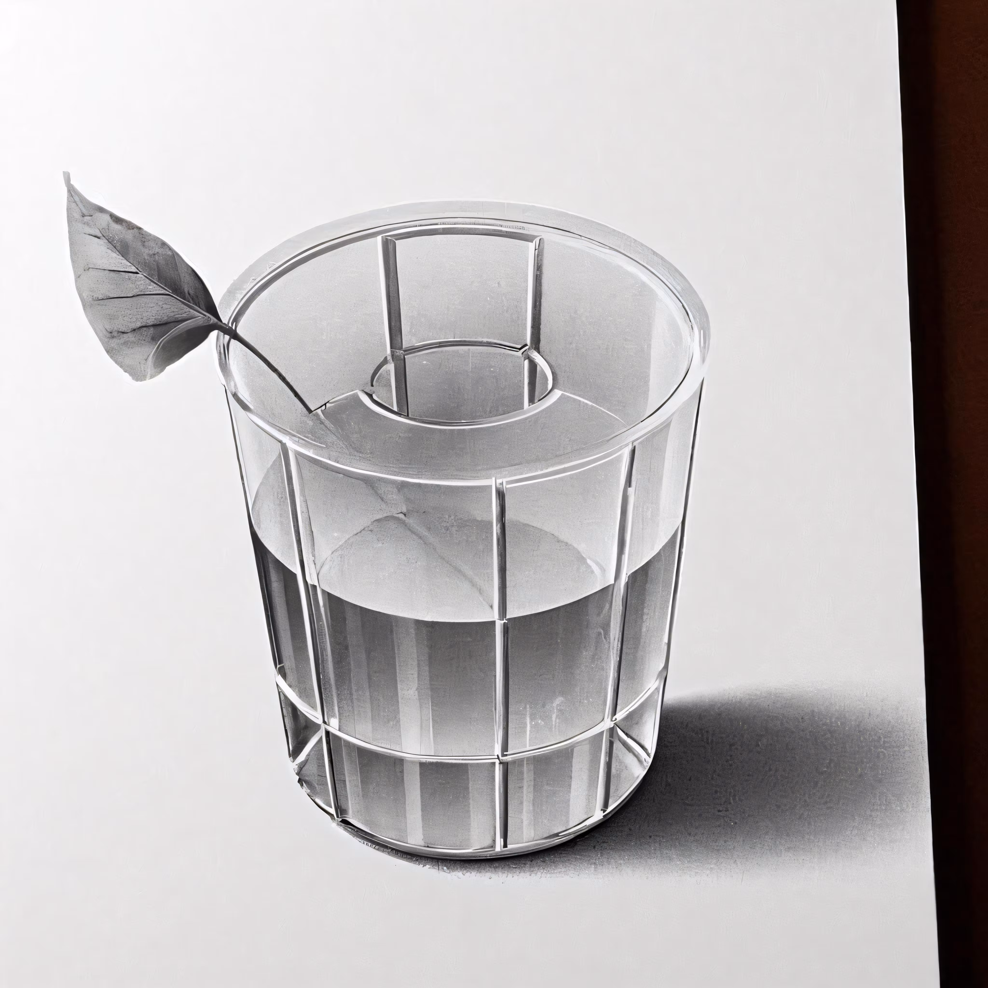 High resolution picture, free to use, a drawing of a cup with a leaf on top