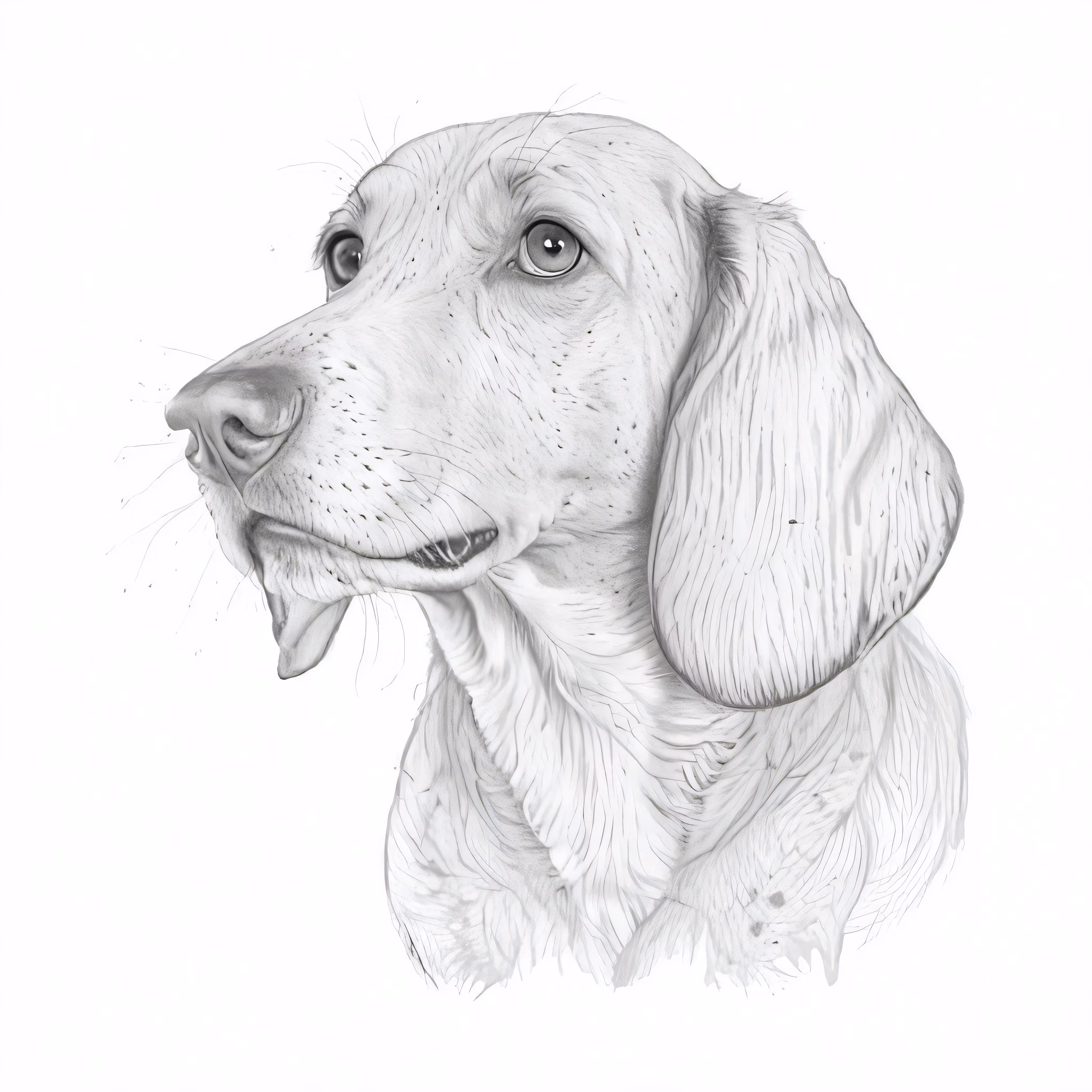 High resolution picture, free to use, a drawing of a dog, in black and white