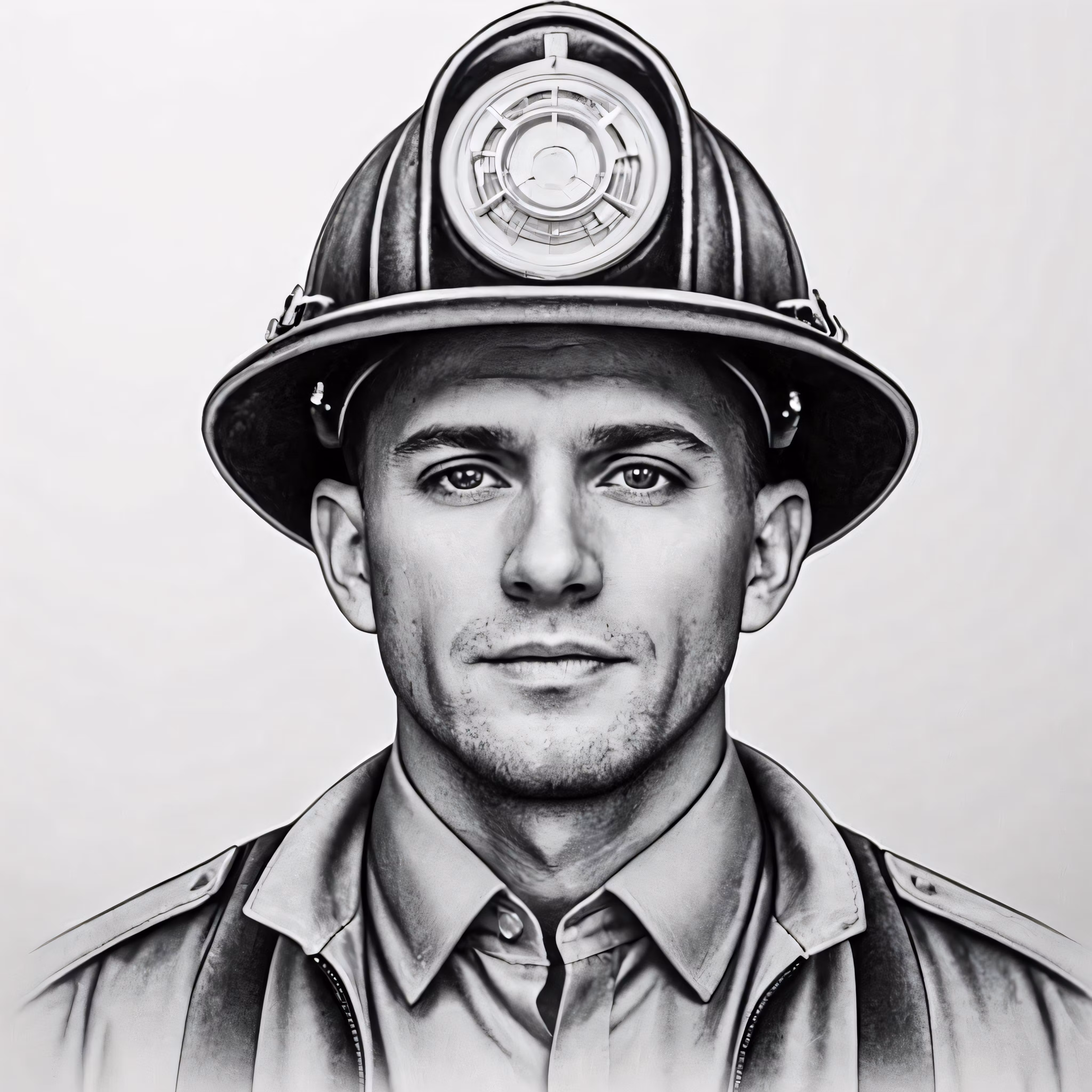 High resolution picture, free to use, a drawing of a firefighter with a helmet on