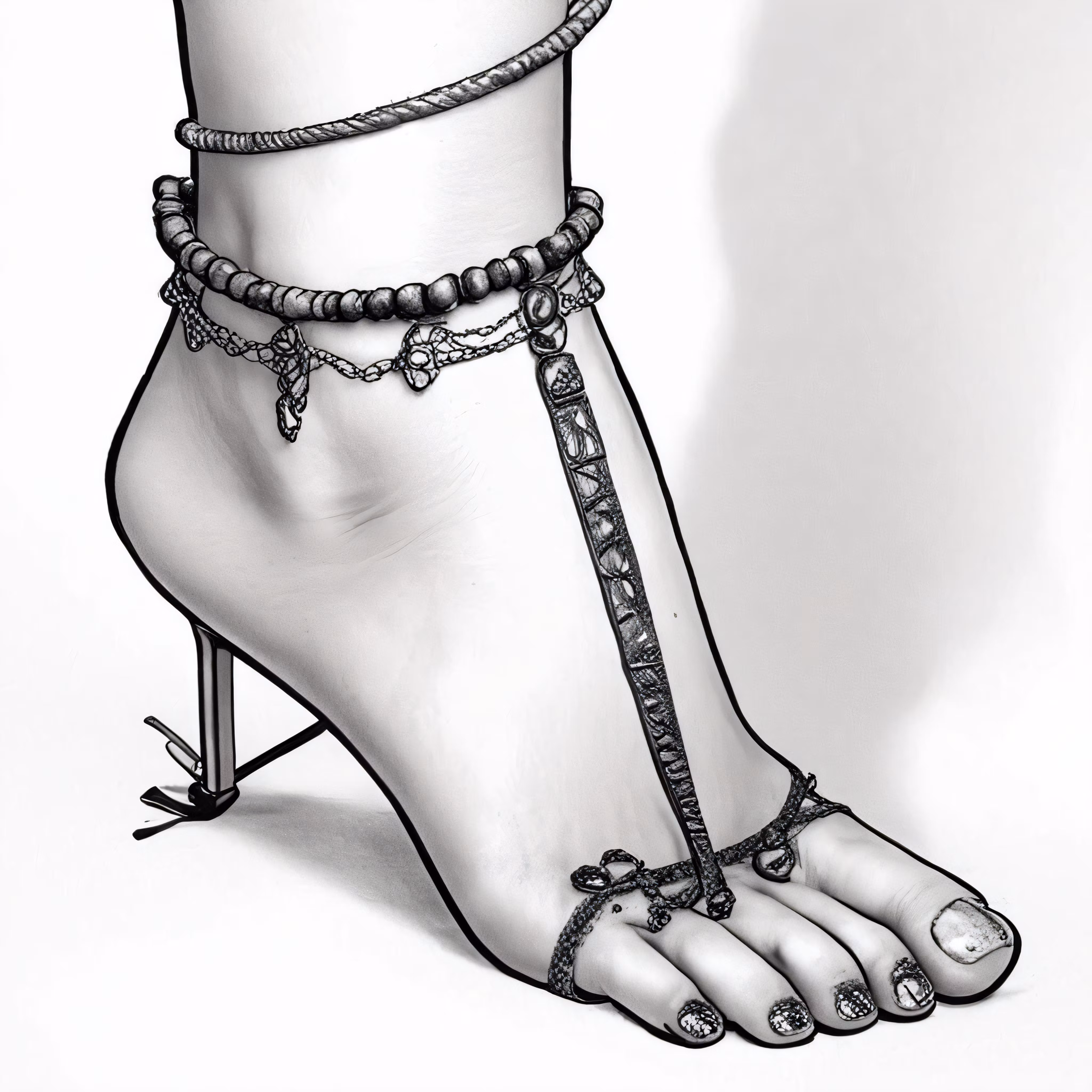 High resolution picture, free to use, a drawing of a foot with some jewelry around it